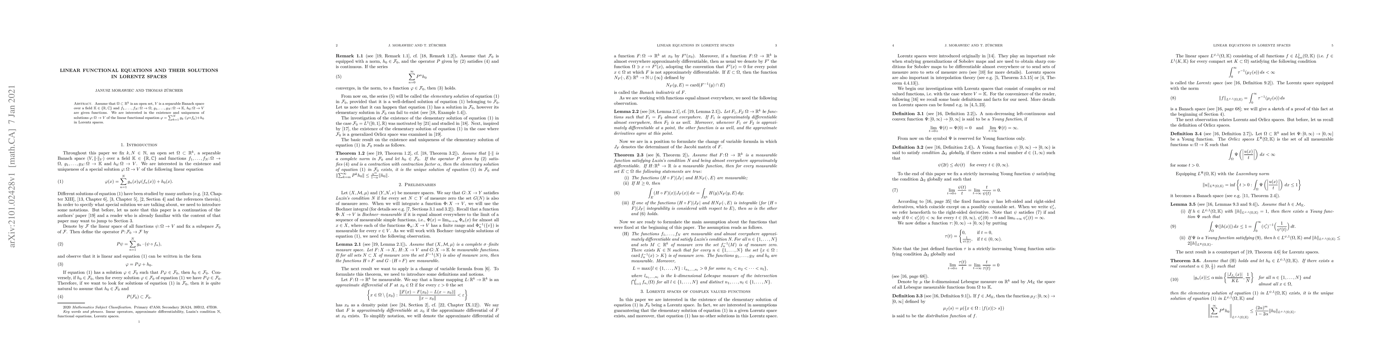 This paper investigates the existence and uniqueness of solutions to linear functional equations in Lorentz spaces, a mathematical framework for function spaces with applications in signal processing and image analysis.