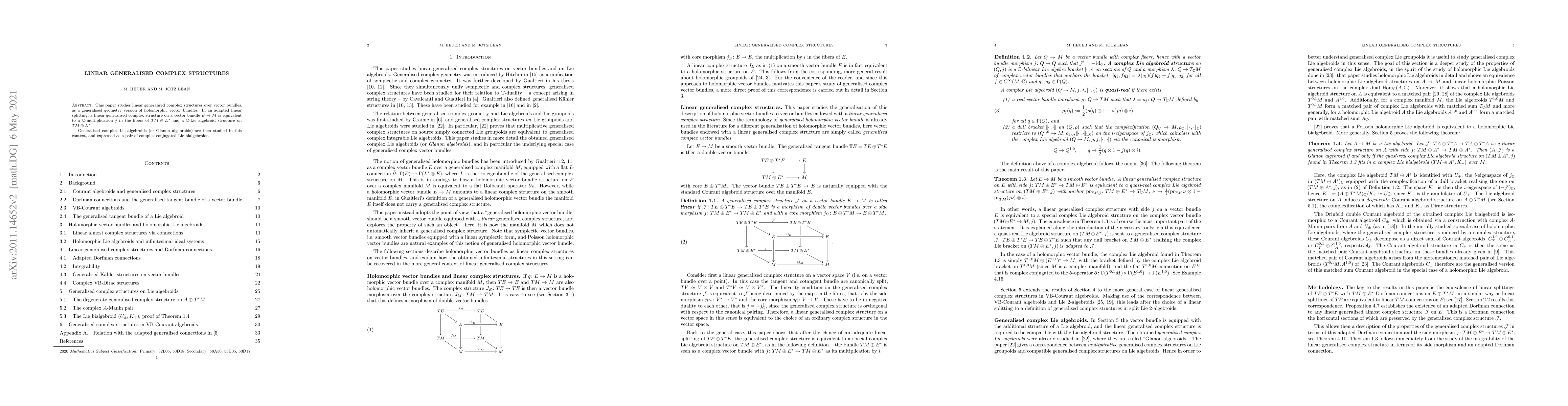 This paper studies linear generalised complex structures over vector bundles, as a generalised geometry version of holomorphic vector bundles. In an adapted linear splitting, a linear generalised complex structure on a vector bundle $E\to M$ is equivalent to a $\mathbb C$-multiplication $j$ in the fibers of $TM\oplus E^*$ and $\mathbb C$-Lie algebroid structure on $TM\oplus E^*$. Generalised complex Lie algebroids (or Glanon algebroids) are then studied in this context, and expressed as a pair of complex conjugated Lie bialgebroids.
