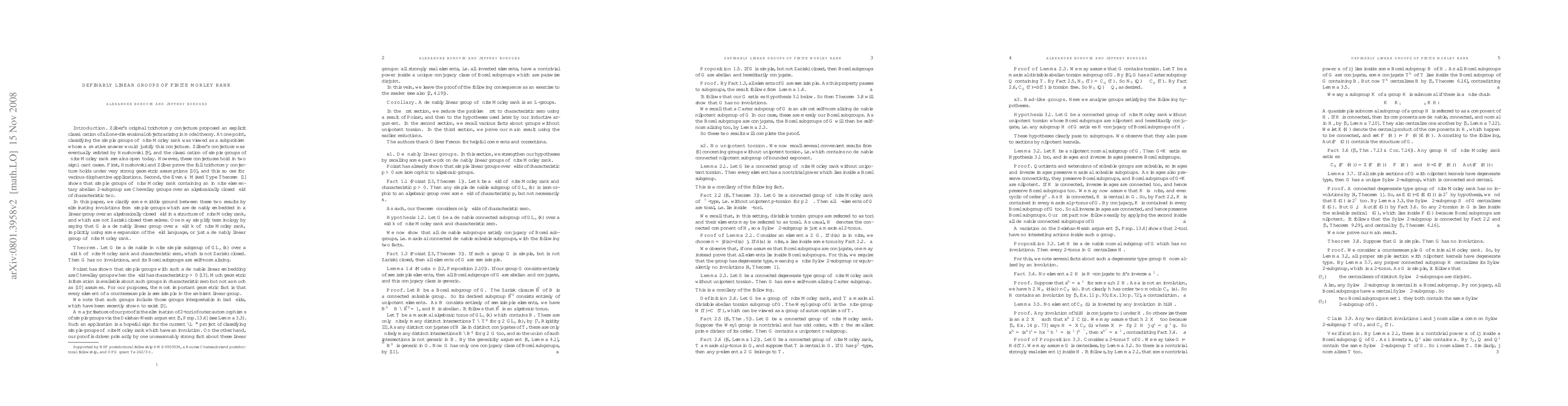 This work provides a novel approach to understanding the structure of groups with finite Morley rank, leveraging advanced model-theoretic techniques.