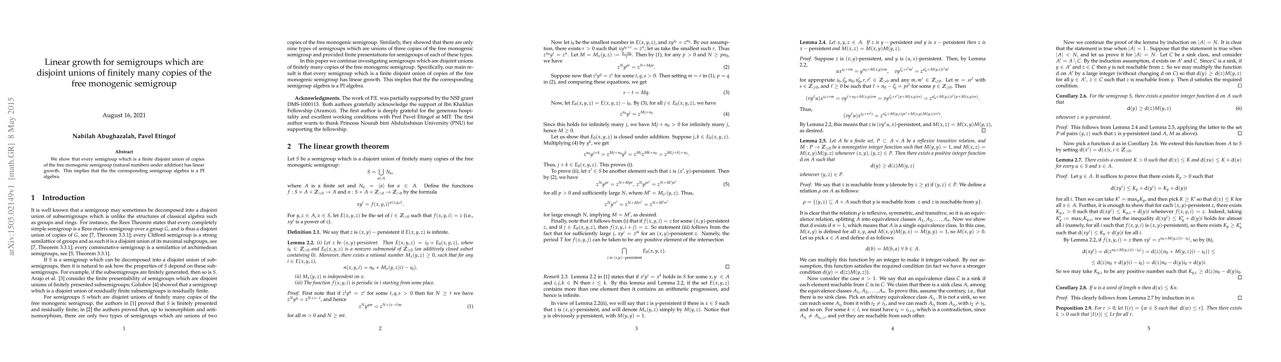 Summary: The paper demonstrates that semigroups formed as finite disjoint unions of copies of the free monogenic semigroup (natural numbers under addition) exhibit linear growth, which consequently indicates that their corresponding semigroup algebras are PI algebras.