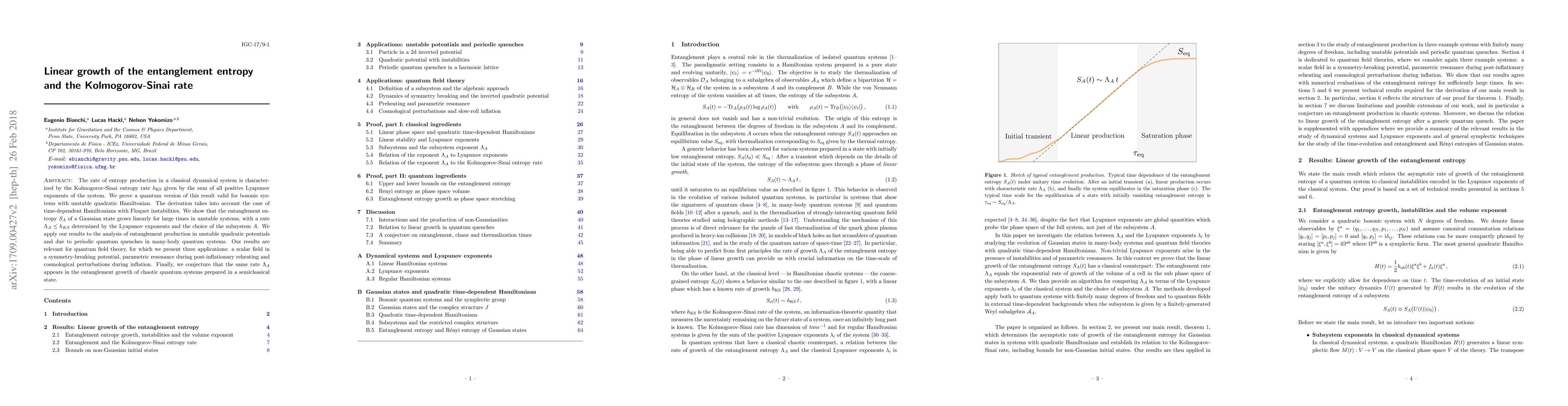 This paper establishes a quantum version of the Kolmogorov-Sinai entropy rate for bosonic systems, demonstrating that the entanglement entropy grows linearly with time in unstable systems, with a rate determined by the Lyapunov exponents. The findings are applied to various quantum field theory scenarios and suggest a universal rate for entanglement growth in chaotic quantum systems.