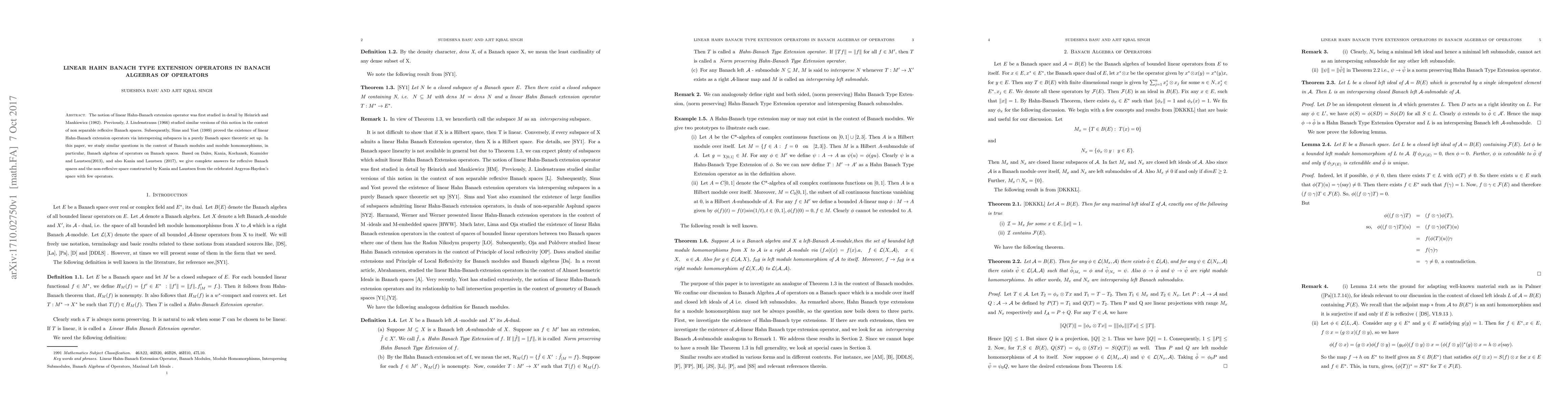 This paper investigates linear Hahn-Banach extension operators within Banach algebras of operators, building on prior work by Heinrich and Mankiewicz, Lindenstrauss, Sims, and Yost. It provides comprehensive results for both reflexive Banach spaces and a non-reflexive space derived from Argyros-Haydon's space.