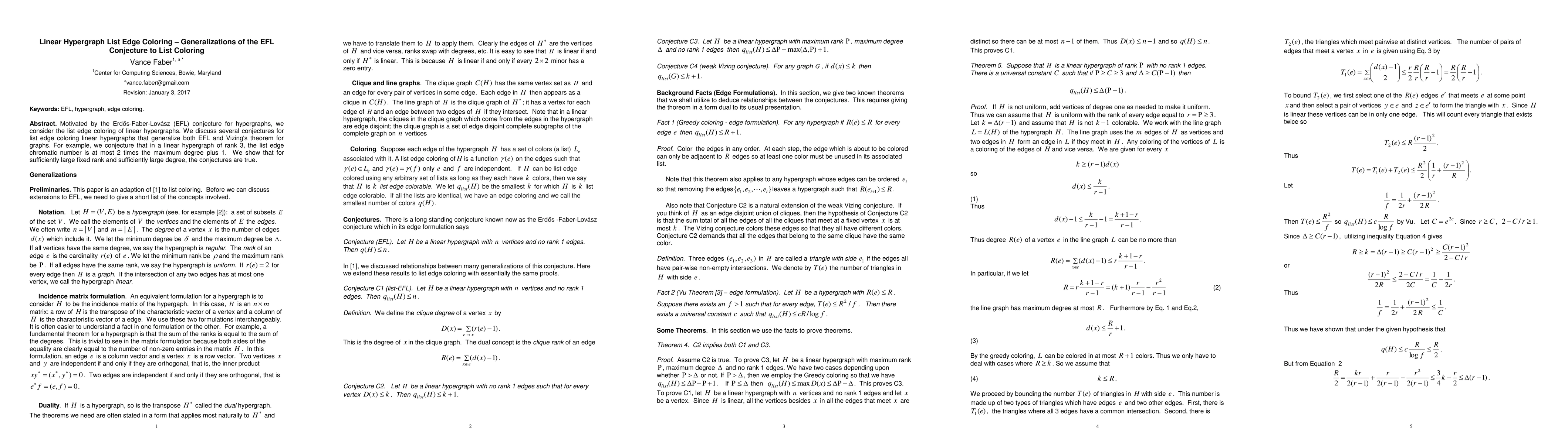 This paper explores generalizations of the Erdős-Faber-Lovász (EFL) conjecture to the list edge coloring of linear hypergraphs, proposing new conjectures that extend Vizing's theorem for graphs. The authors demonstrate that their conjectures hold for linear hypergraphs of sufficiently large rank and degree.