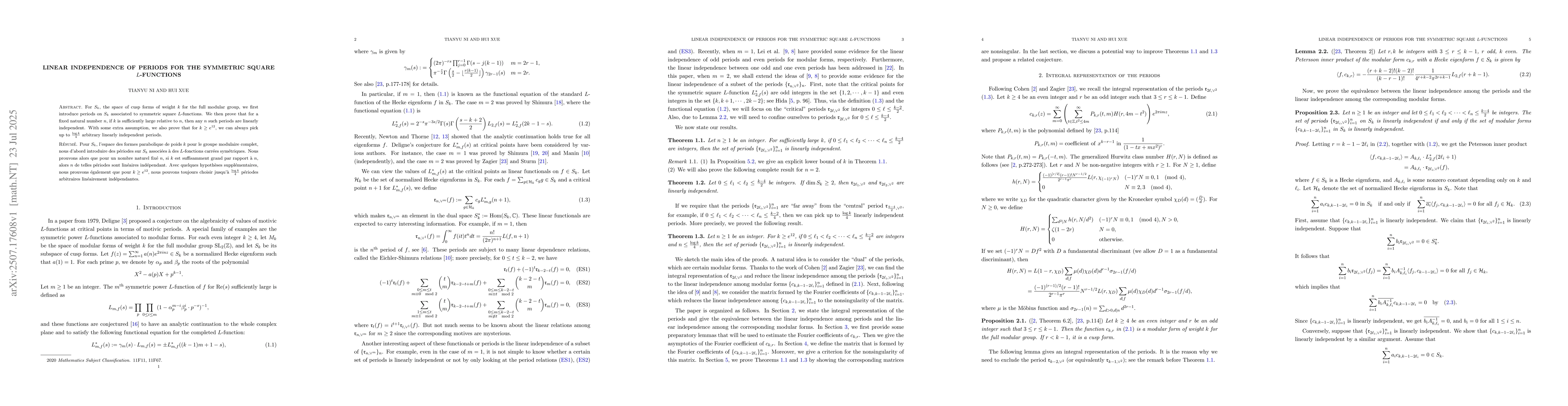 The research made a significant technical contribution by establishing a new result on the linear independence of even periods of second symmetric power of L-functions.