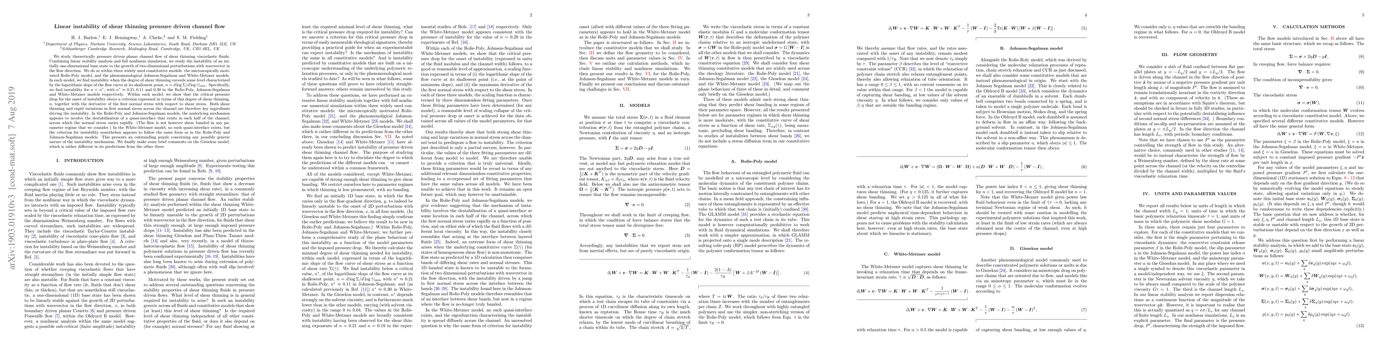 Johnson-Segalman and White-Metzner models. In each model, we find instability