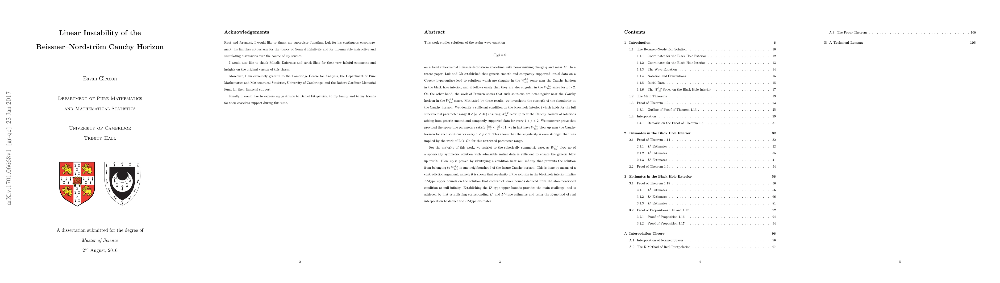 This study contributes to understanding the linear instability of the Cauchy horizon in Reissner-Nordström black holes, which has implications for the predictability breakdown in gravitational collapse scenarios.