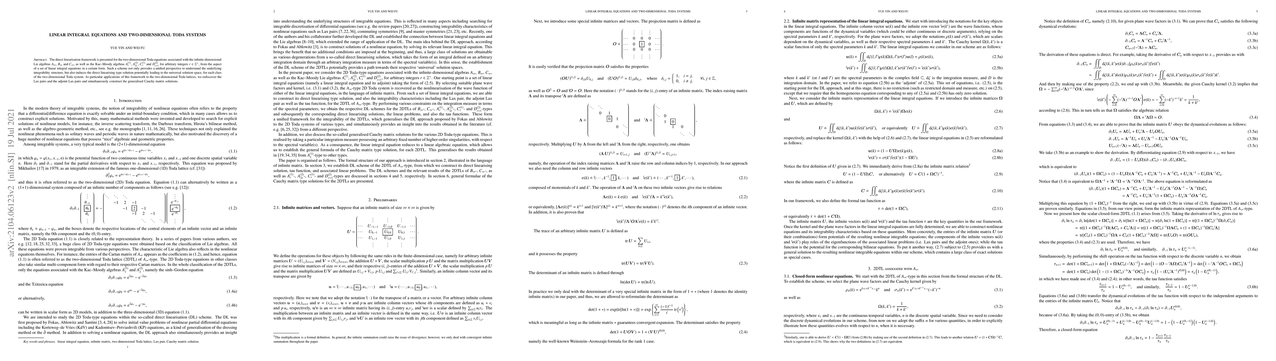 This paper presents a direct linearisation framework for two-dimensional Toda systems linked to various infinite-dimensional Lie algebras, expressed as linear integral equations. This approach unifies the understanding of their integrability and potentially leads to universal solution spaces for each Toda system class.
