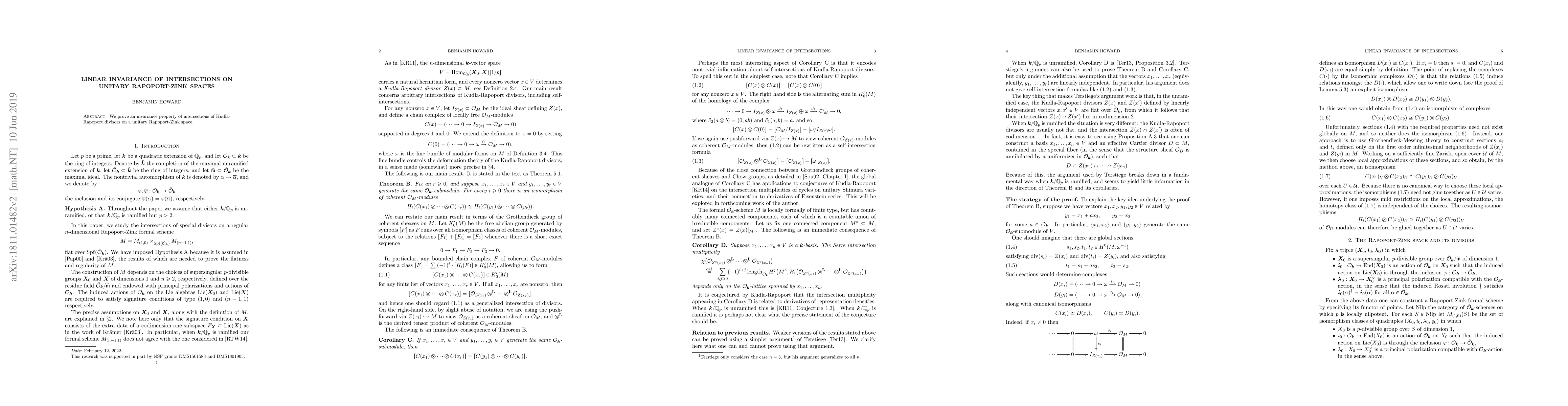 Summary: This paper establishes a linear invariance property for intersections of Kudla-Rapoport divisors on unitary Rapoport-Zink spaces, contributing to the understanding of their geometric structure. The result has implications for the broader theory of special cycles.