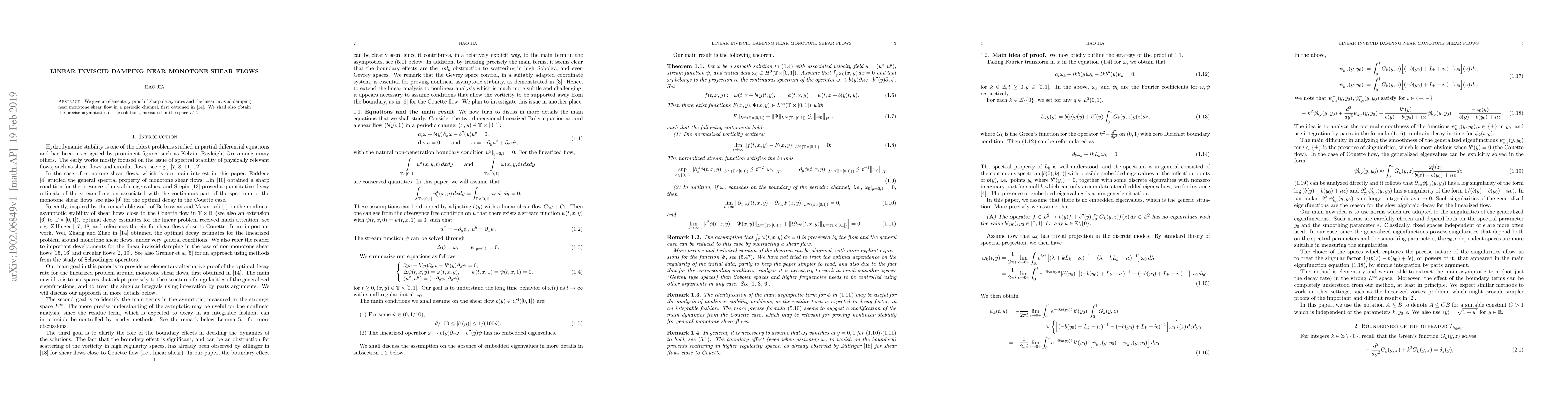 Summary: This paper provides a straightforward proof of the sharp decay rates and linear inviscid damping near monotone shear flows in a periodic channel, and determines the precise asymptotic behavior of solutions in the $L^{\infty}$ space.