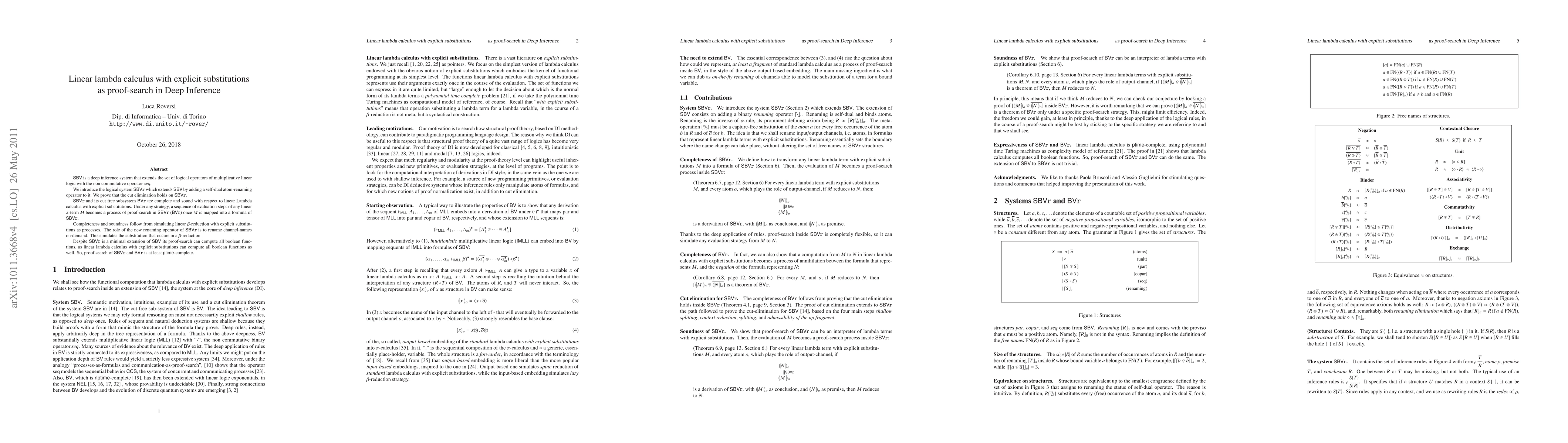 SBV is a deep inference system that extends the set of logical operators of multiplicative linear logic with the non commutative operator Seq. We introduce the logical system SBVr which extends SBV by adding a self-dual atom-renaming operator to it. We prove that the cut elimination holds on SBVr. SBVr and its cut free subsystem BVr are complete and sound with respect to linear lambda calculus with explicit substitutions. Under any strategy, a sequence of evaluation steps of any linear lambda-term M becomes a process of proof-search in SBVr (BVr) once M is mapped into a formula of SBVr. Completeness and soundness follow from simulating linear beta-reduction with explicit substitutions as processes. The role of the new renaming operator of SBVr is to rename channel-names on-demand. This simulates the substitution that occurs in a beta-reduction. Despite SBVr is a minimal extension of SBV its proof-search can compute all boolean functions, as linear lambda-calculus with explicit substitutions can compute all boolean functions as well. So, proof search of SBVr and BVr is at least ptime-complete.