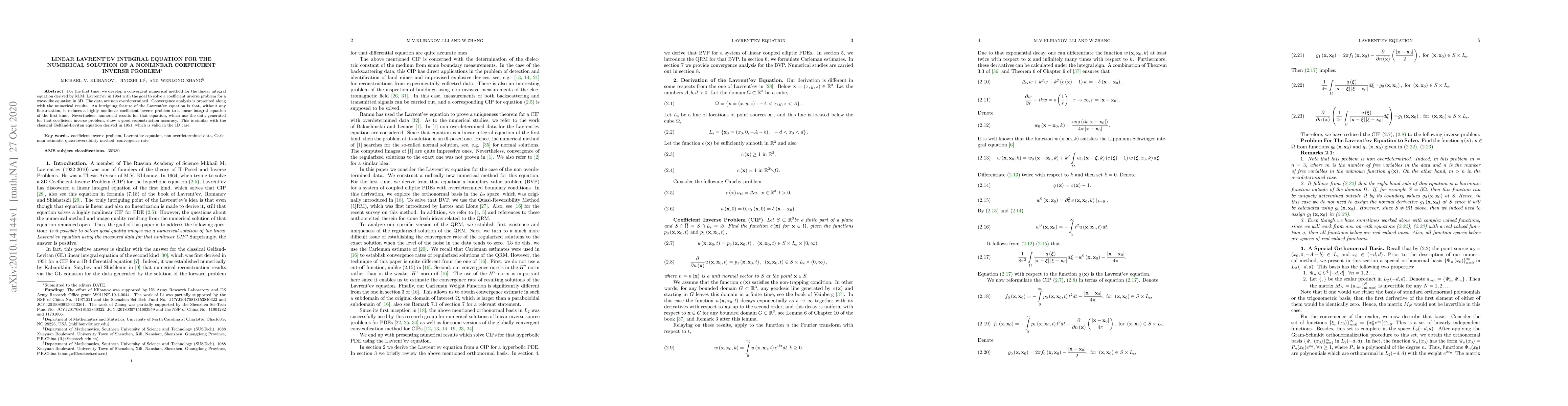 Michael V. Klibanov, Zhipeng Yang, Jingzhi Li