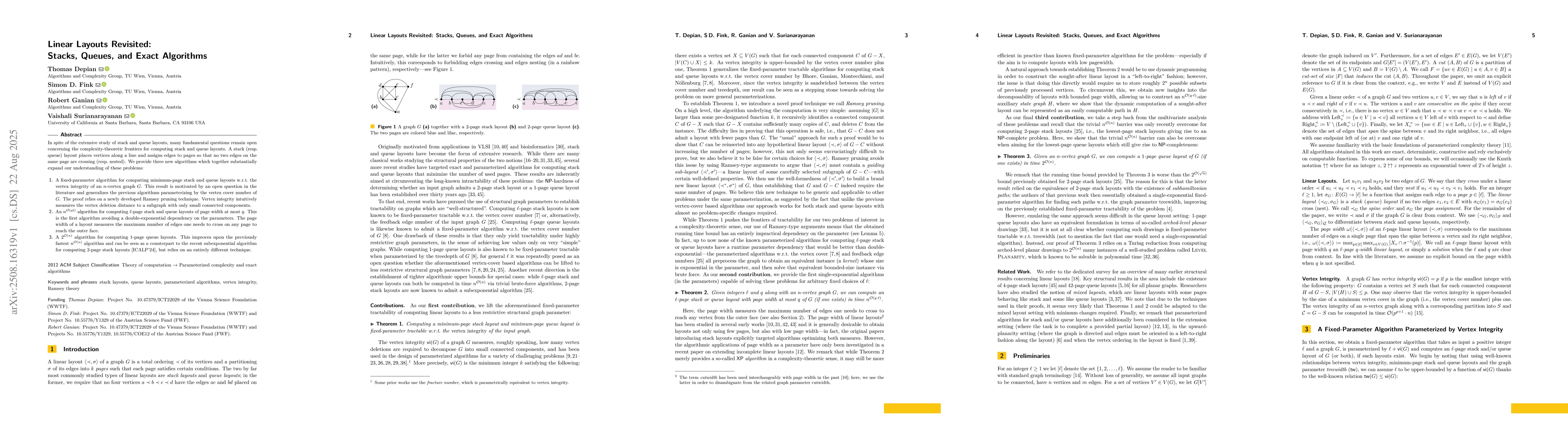 In spite of the extensive study of stack and queue layouts, many fundamental questions remain open concerning the complexity-theoretic frontiers for computing stack and queue layouts. A stack (resp. queue) layout places vertices along a line and assigns edges to pages so that no two edges on the same page are crossing (resp. nested). We provide three new algorithms which together substantially expand our understanding of these problems: (1) A fixed-parameter algorithm for computing minimum-page stack and queue layouts w.r.t. the vertex integrity of an n-vertex graph G. This result is motivated by an open question in the literature and generalizes the previous algorithms parameterizing by the vertex cover number of G. The proof relies on a newly developed Ramsey pruning technique. Vertex integrity intuitively measures the vertex deletion distance to a subgraph with only small connected components. (2) An n^(O(q * l)) algorithm for computing l-page stack and queue layouts of page width at most q. This is the first algorithm avoiding a double-exponential dependency on the parameters. The page width of a layout measures the maximum number of edges one needs to cross on any page to reach the outer face. (3) A 2^(O(n)) algorithm for computing 1-page queue layouts. This improves upon the previously fastest n^(O(n)) algorithm and can be seen as a counterpart to the recent subexponential algorithm for computing 2-page stack layouts [ICALP'24], but relies on an entirely different technique.