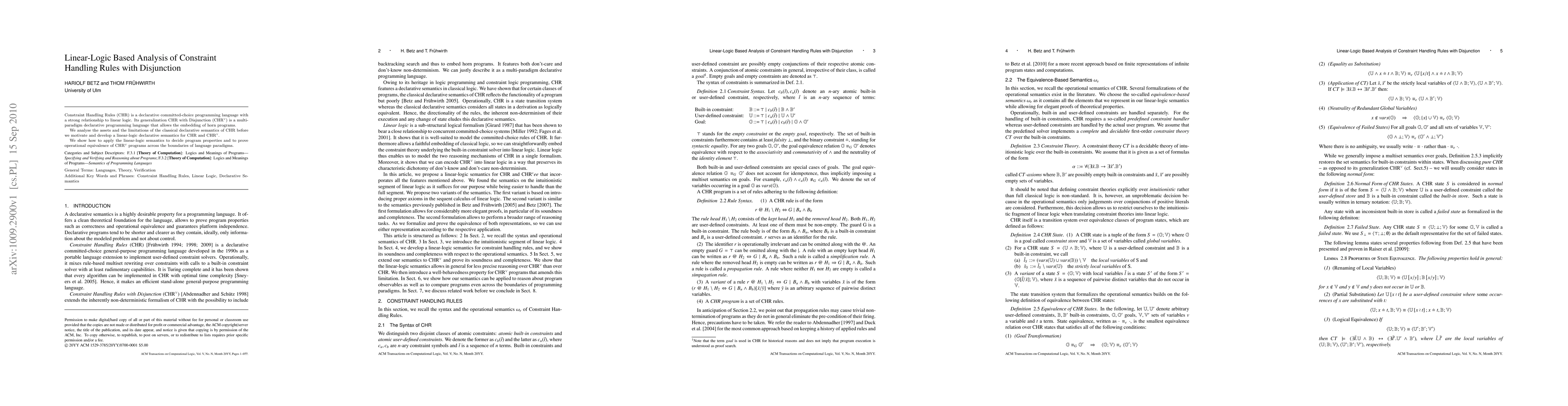 This paper analyzes the classical semantics of Constraint Handling Rules (CHR) and its disjunctive extension (CHRv), proposing a linear-logic based semantics to enhance program property decision and prove operational equivalence across different language paradigms.