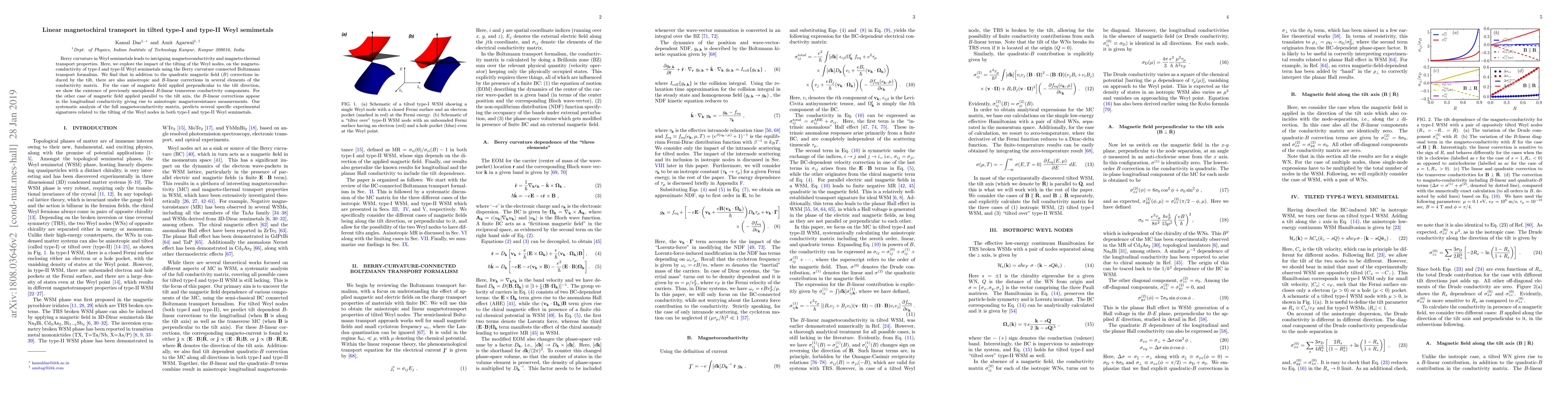 This paper investigates how tilting of Weyl nodes in type-I and type-II Weyl semimetals influences magneto-electric conductivity, revealing B-linear and anisotropic corrections in the conductivity matrix. These corrections manifest as finite B-linear transverse conductivity when the magnetic field is perpendicular to the tilt direction and asymmetric lineshapes in longitudinal conductivity when parallel to the tilt axis.