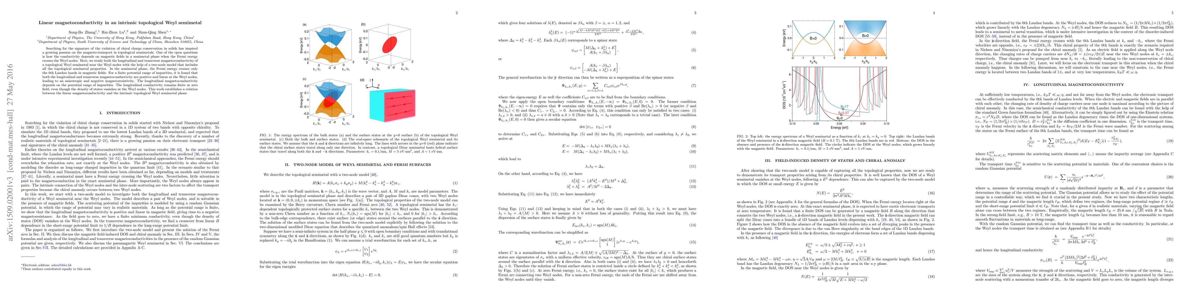 Searching for the signature of the violation of chiral charge conservation in solids has inspired a growing passion on the magneto-transport in topological semimetals. One of the open questions is how the conductivity depends on magnetic fields in a semimetal phase when the Fermi energy crosses the Weyl nodes. Here, we study both the longitudinal and transverse magnetoconductivity of a topological Weyl semimetal near the Weyl nodes with the help of a two-node model that includes all the topological semimetal properties. In the semimetal phase, the Fermi energy crosses only the 0th Landau bands in magnetic fields. For a finite potential range of impurities, it is found that both the longitudinal and transverse magnetoconductivity are positive and linear at the Weyl nodes, leading to an anisotropic and negative magnetoresistivity. The longitudinal magnetoconductivity depends on the potential range of impurities. The longitudinal conductivity remains finite at zero field, even though the density of states vanishes at the Weyl nodes. This work establishes a relation between the linear magnetoconductivity and the intrinsic topological Weyl semimetal phase.
