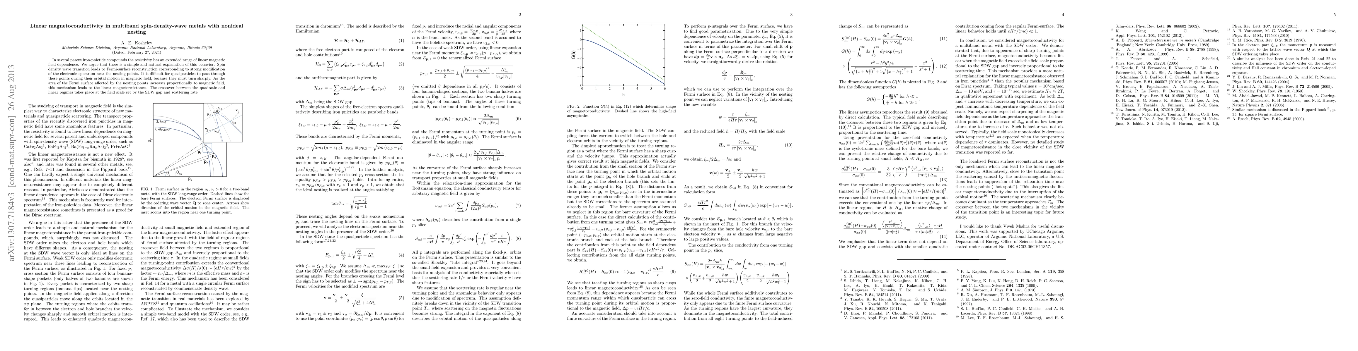 Researchers found that strong magnetic fields cause linear changes in resistivity in certain iron-pnictide compounds due to the way spin density waves affect the material's electronic spectrum, leading to a simple explanation for an extended range of linear magnetic field dependence.