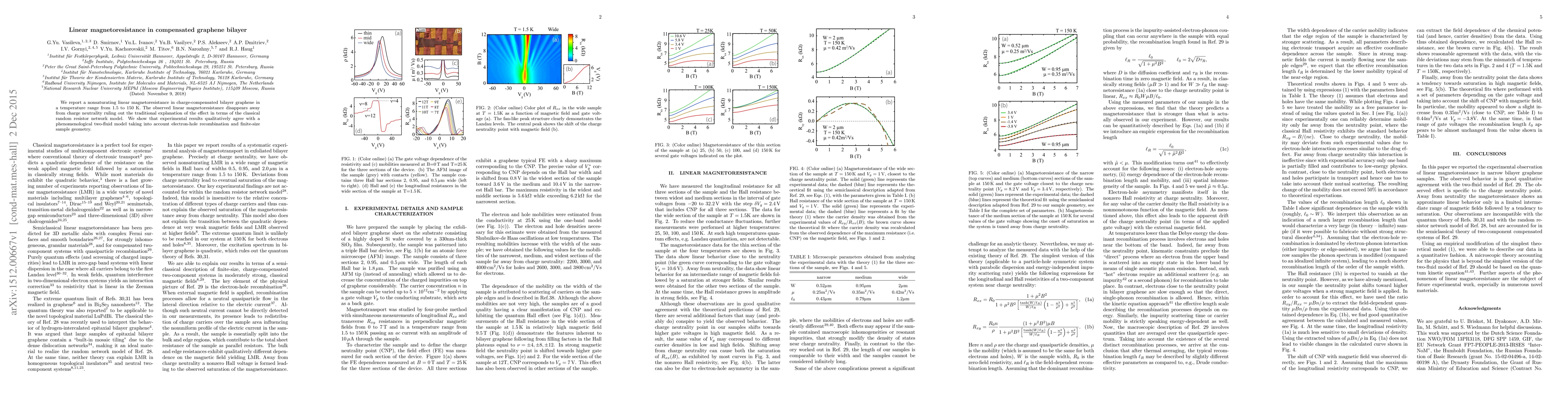 Summary: Researchers observed linear magnetoresistance in charge-compensated graphene bilayers that vanishes away from neutrality, refuting traditional explanations. Results align with a two-fluid model considering electron-hole recombination and sample geometry.