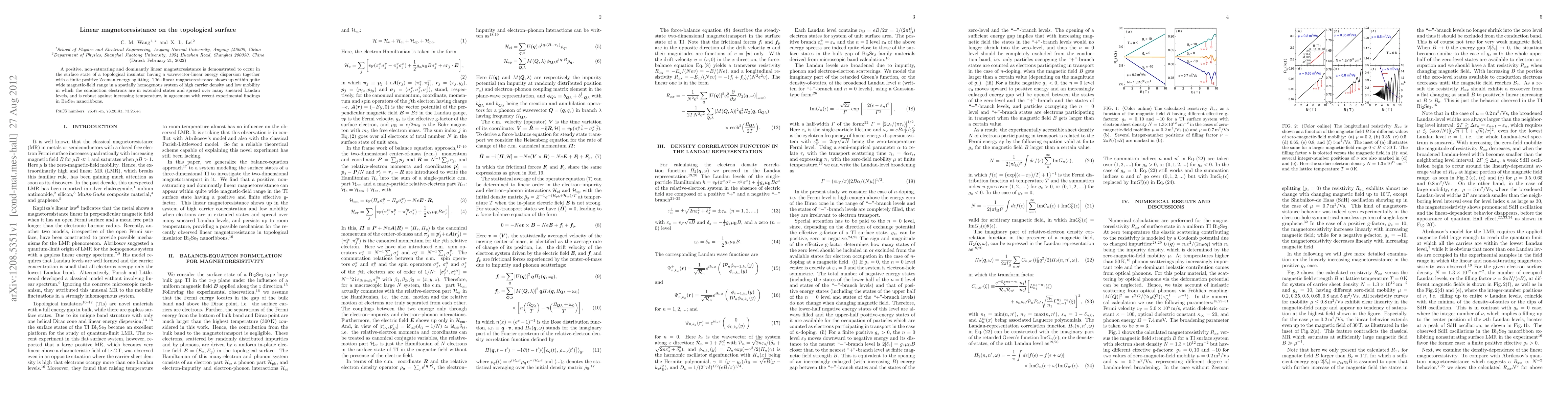 This paper demonstrates a linear magnetoresistance in the surface state of a topological insulator, characterized by a non-saturating, positive response across a wide magnetic field range, which remains robust against temperature increases, consistent with observations in Bi$_2$Se$_3$ nanoribbons.