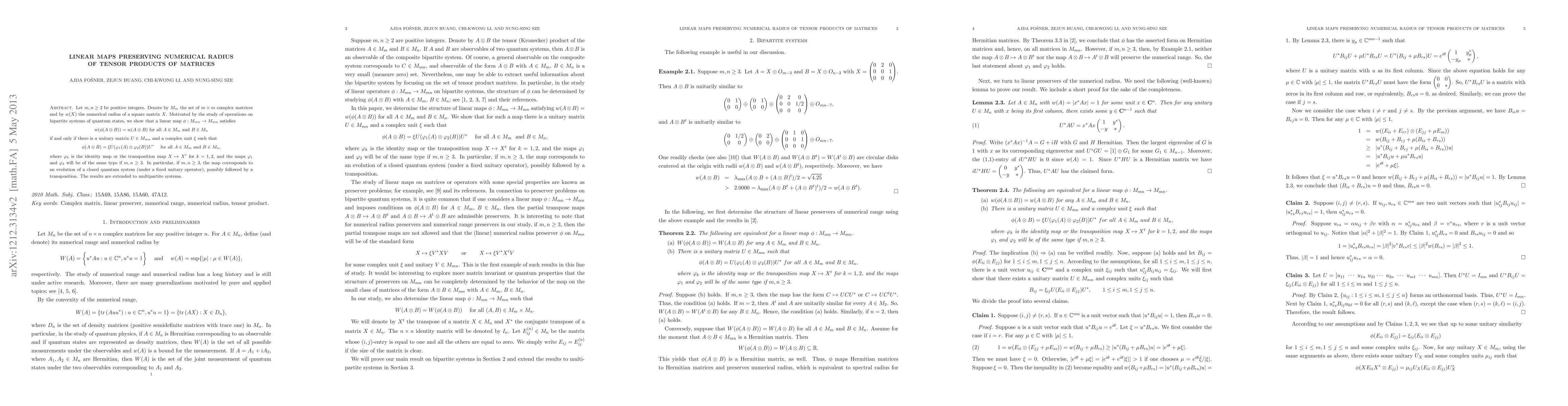 A research paper explores linear maps on matrix tensor products that preserve numerical radius, determining their structure and implications for numerical analysis.