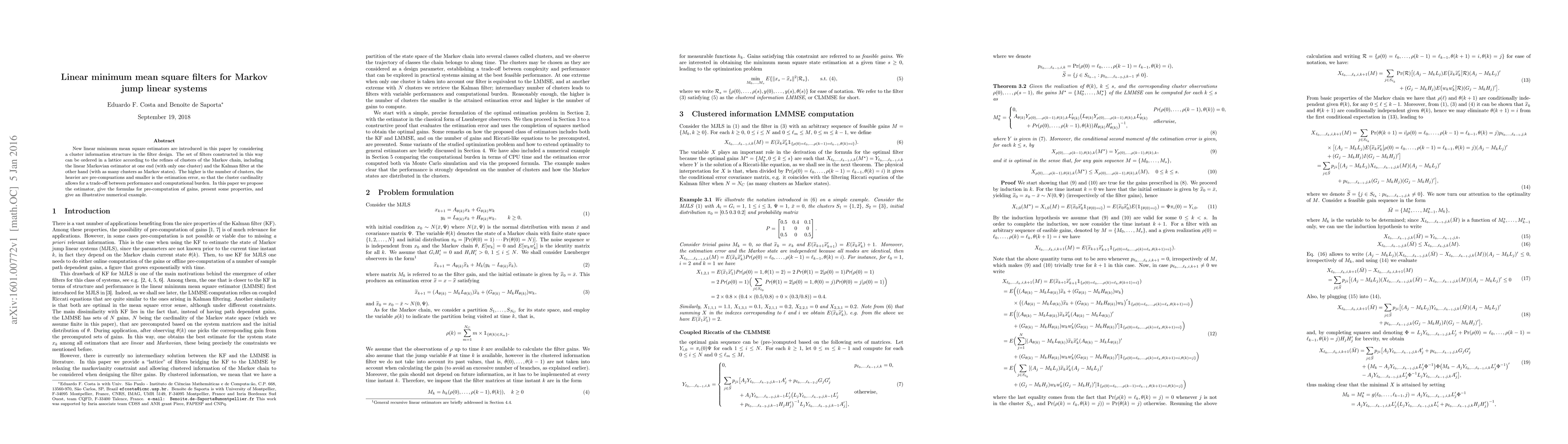 This paper introduces new linear minimum mean square estimators for Markov jump linear systems using a cluster information structure. The proposed filters offer a trade-off between estimation accuracy and computational burden, with higher cluster numbers leading to better performance but increased pre-computations.