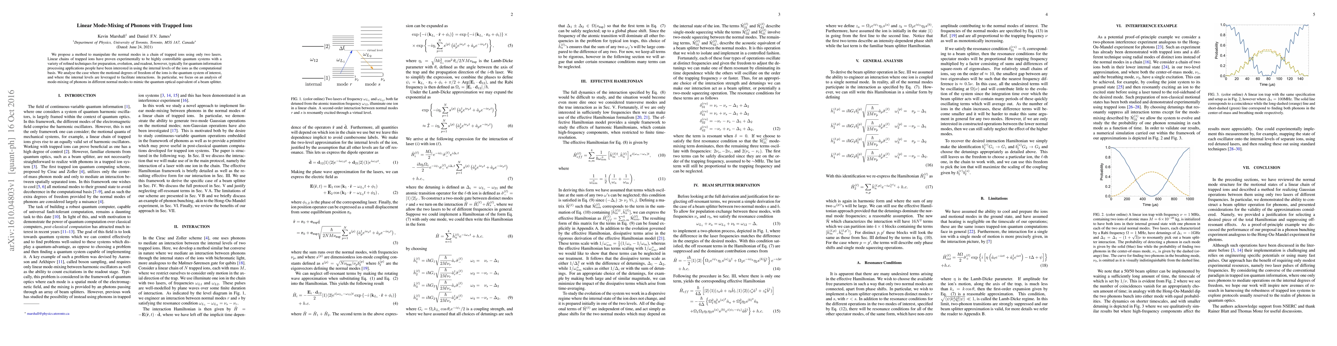 This paper proposes a method to manipulate the normal modes in trapped ion chains using two lasers to mix phonons, treating the motional degrees of freedom as the quantum system of interest while leveraging internal ion levels for interaction, akin to a quantum optical beam splitter.