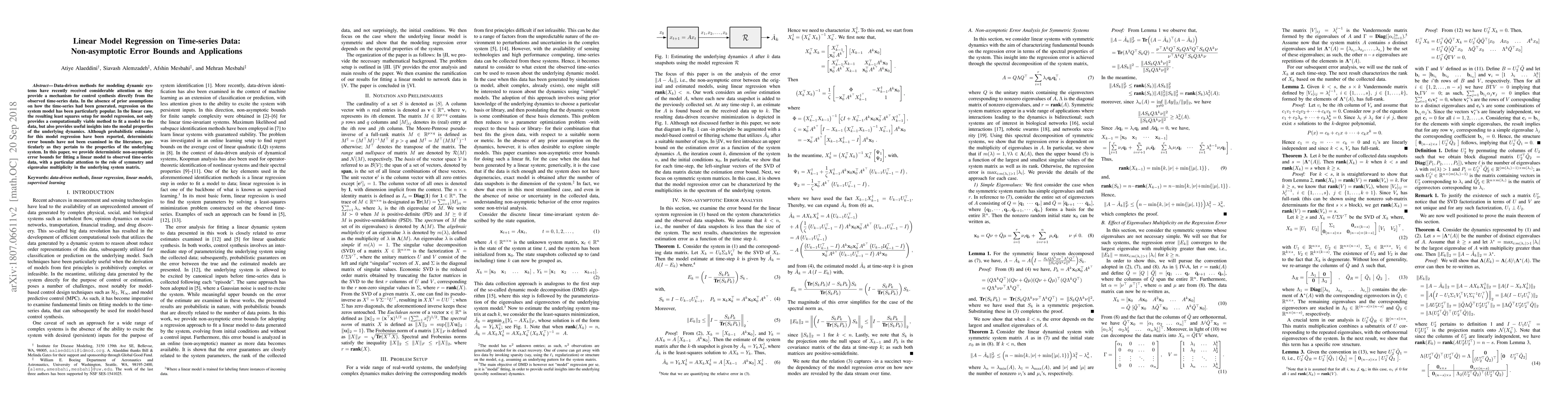 This paper presents deterministic non-asymptotic error bounds for linear model regression in time-series data, focusing on the impact of symmetry and eigenvalue multiplicity in the system matrix, providing insights into the model's modal properties.