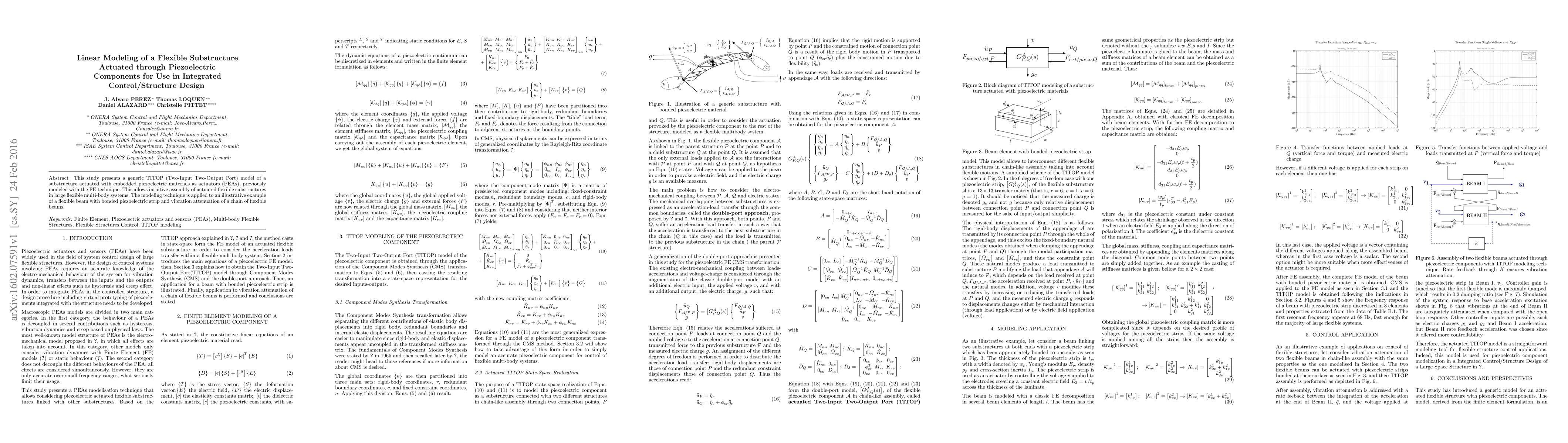 This study presents a generic TITOP (Two-Input Two-Output Port) model of a substructure actuated with embedded piezoelectric materials as actuators (PEAs), previously modeled with the FE technique. This allows intuitive assembly of actuated flexible substructures in large flexible multi-body systems. The modeling technique is applied to an illustrative example of a flexible beam with bonded piezoelectric strip and vibration attenuation of a chain of flexible beams.