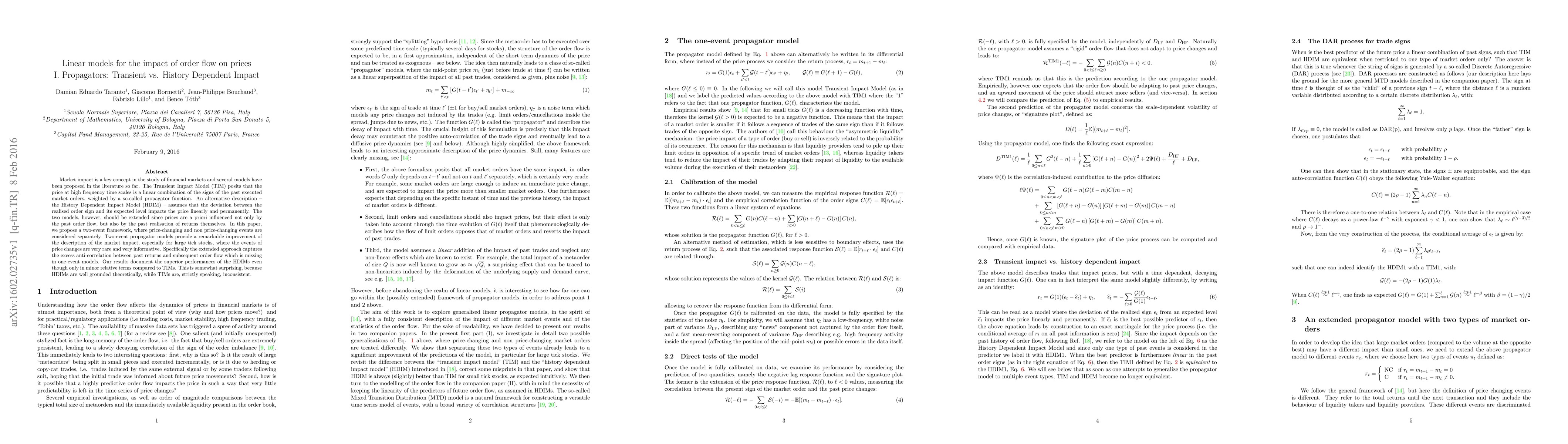 Market impact is a key concept in the study of financial markets and several models have been proposed in the literature so far. The Transient Impact Model (TIM) posits that the price at high frequency time scales is a linear combination of the signs of the past executed market orders, weighted by a so-called propagator function. An alternative description -- the History Dependent Impact Model (HDIM) -- assumes that the deviation between the realised order sign and its expected level impacts the price linearly and permanently. The two models, however, should be extended since prices are a priori influenced not only by the past order flow, but also by the past realisation of returns themselves. In this paper, we propose a two-event framework, where price-changing and non price-changing events are considered separately. Two-event propagator models provide a remarkable improvement of the description of the market impact, especially for large tick stocks, where the events of price changes are very rare and very informative. Specifically the extended approach captures the excess anti-correlation between past returns and subsequent order flow which is missing in one-event models. Our results document the superior performances of the HDIMs even though only in minor relative terms compared to TIMs. This is somewhat surprising, because HDIMs are well grounded theoretically, while TIMs are, strictly speaking, inconsistent.