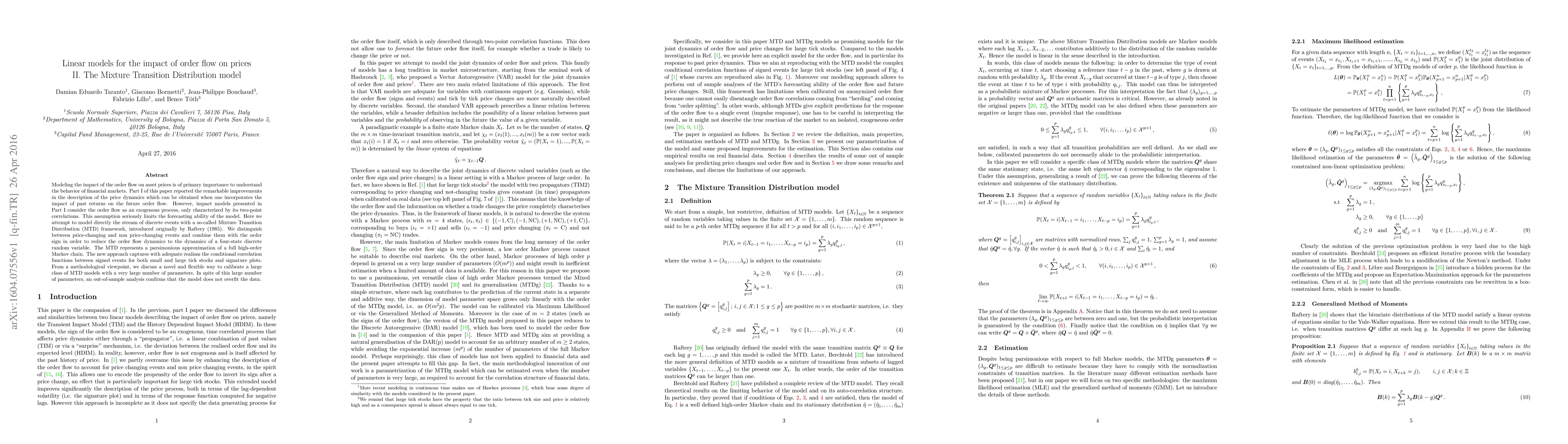 Modeling the impact of the order flow on asset prices is of primary importance to understand the behavior of financial markets. Part I of this paper reported the remarkable improvements in the description of the price dynamics which can be obtained when one incorporates the impact of past returns on the future order flow. However, impact models presented in Part I consider the order flow as an exogenous process, only characterized by its two-point correlations. This assumption seriously limits the forecasting ability of the model. Here we attempt to model directly the stream of discrete events with a so-called Mixture Transition Distribution (MTD) framework, introduced originally by Raftery (1985). We distinguish between price-changing and non price-changing events and combine them with the order sign in order to reduce the order flow dynamics to the dynamics of a four-state discrete random variable. The MTD represents a parsimonious approximation of a full high-order Markov chain. The new approach captures with adequate realism the conditional correlation functions between signed events for both small and large tick stocks and signature plots. From a methodological viewpoint, we discuss a novel and flexible way to calibrate a large class of MTD models with a very large number of parameters. In spite of this large number of parameters, an out-of-sample analysis confirms that the model does not overfit the data.