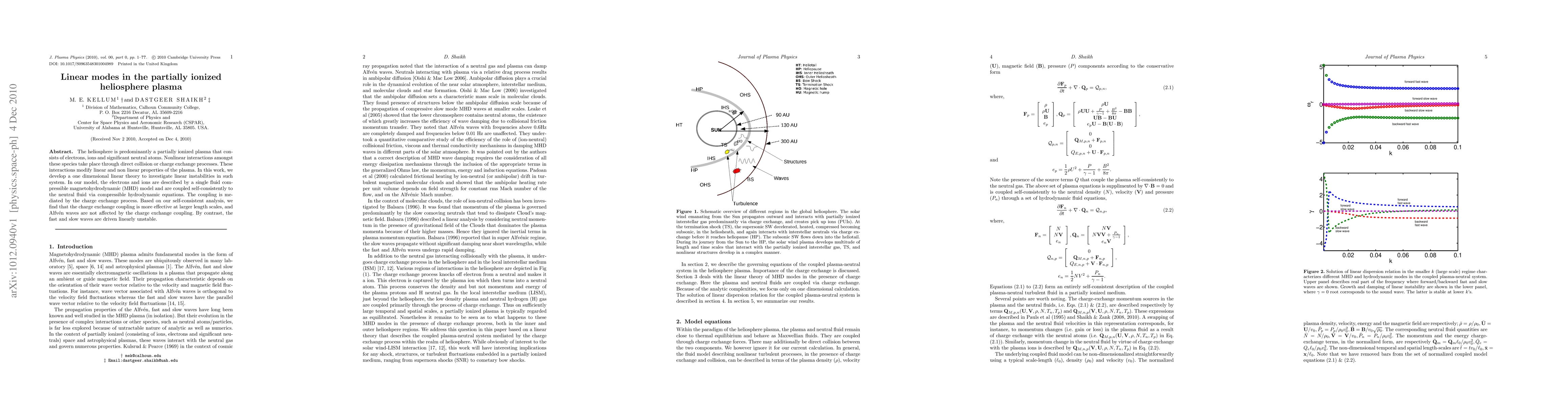 This paper develops a one-dimensional linear theory to study linear instabilities in the partially ionized heliosphere plasma, where electrons, ions, and neutral atoms interact via collision and charge exchange. The analysis reveals that charge exchange coupling is more effective at larger scales and drives fast and slow waves unstable, while Alfvén waves remain unaffected.