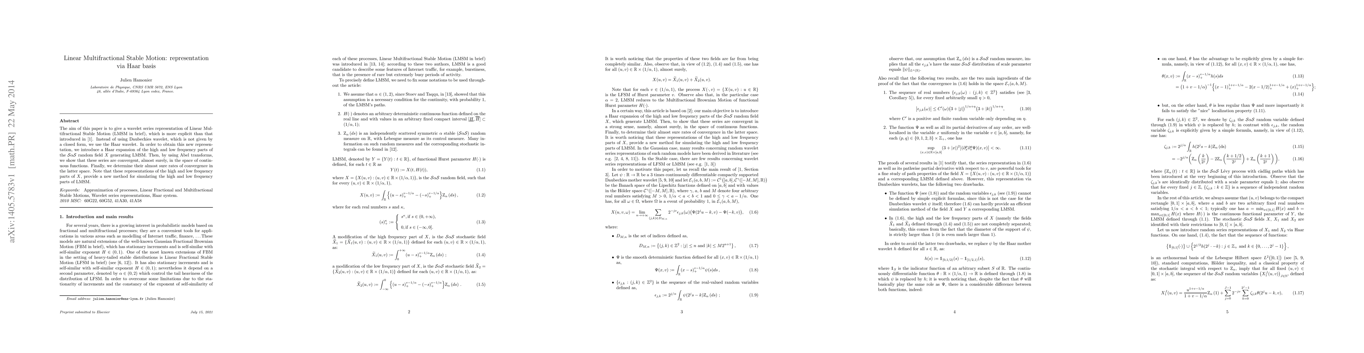 This paper presents a wavelet series representation of Linear Multifractional Stable Motion (LMSM) using the Haar wavelet basis, offering a more explicit form than previous methods. It introduces Haar expansions for the high and low frequency components of the $\mathcal{S}\alpha \mathcal{S}$ random field generating LMSM, demonstrating almost sure convergence and determining the rates of convergence in continuous function space.