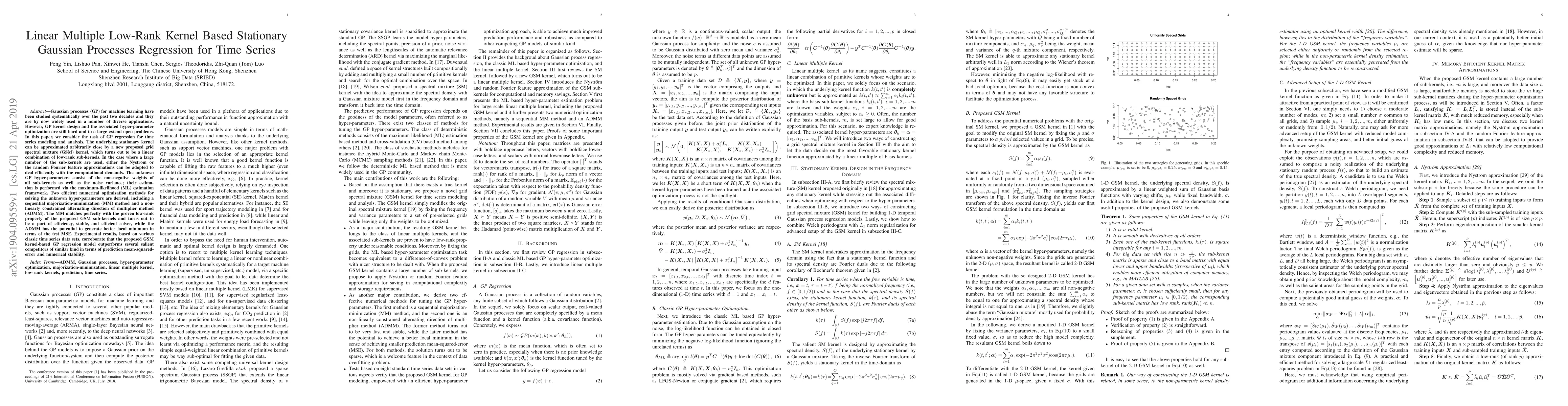 Gaussian processes (GP) for machine learning have been studied systematically over the past two decades and they are by now widely used in a number of diverse applications. However, GP kernel design and the associated hyper-parameter optimization are still hard and to a large extend open problems. In this paper, we consider the task of GP regression for time series modeling and analysis. The underlying stationary kernel can be approximated arbitrarily close by a new proposed grid spectral mixture (GSM) kernel, which turns out to be a linear combination of low-rank sub-kernels. In the case where a large number of the sub-kernels are used, either the Nystr\"{o}m or the random Fourier feature approximations can be adopted to deal efficiently with the computational demands. The unknown GP hyper-parameters consist of the non-negative weights of all sub-kernels as well as the noise variance; their estimation is performed via the maximum-likelihood (ML) estimation framework. Two efficient numerical optimization methods for solving the unknown hyper-parameters are derived, including a sequential majorization-minimization (MM) method and a non-linearly constrained alternating direction of multiplier method (ADMM). The MM matches perfectly with the proven low-rank property of the proposed GSM sub-kernels and turns out to be a part of efficiency, stable, and efficient solver, while the ADMM has the potential to generate better local minimum in terms of the test MSE. Experimental results, based on various classic time series data sets, corroborate that the proposed GSM kernel-based GP regression model outperforms several salient competitors of similar kind in terms of prediction mean-squared-error and numerical stability.