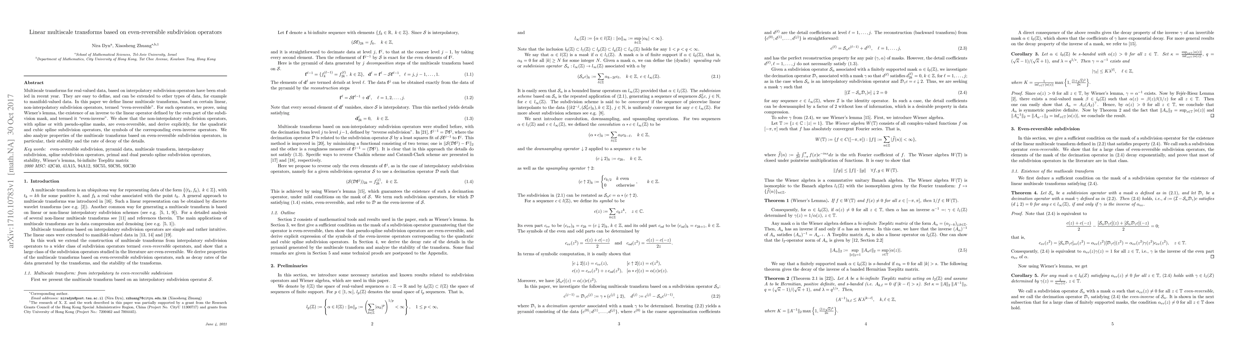 Researchers develop linear multiscale transforms based on even-reversible subdivision operators, proving their existence and analyzing properties such as stability and detail decay rate.