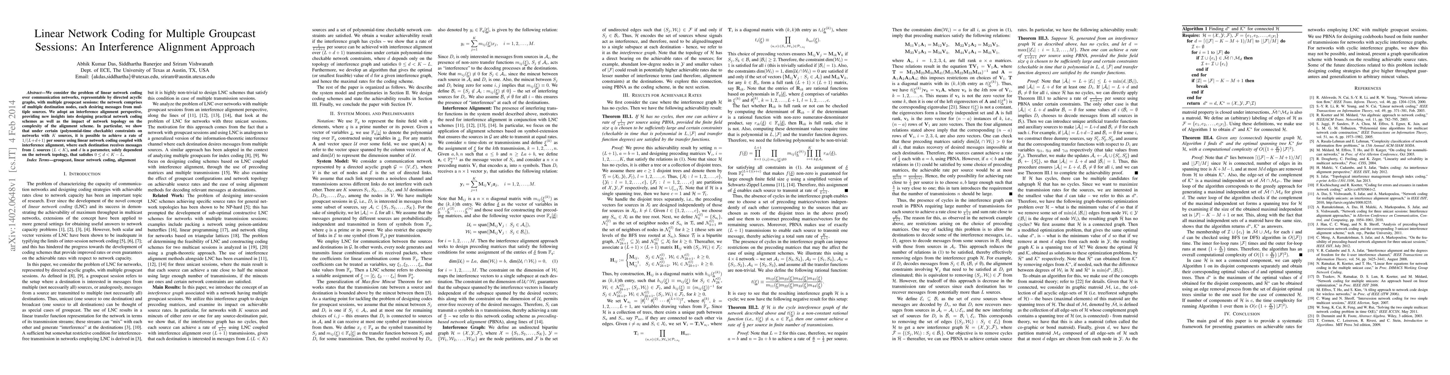 This paper explores linear network coding for multiple groupcast sessions using an interference alignment approach. It demonstrates that under specific network constraints, a rate of $1/(L+d+1)$ per source can be achieved, where $d$ depends on network topology, highlighting the impact of network structure on coding scheme complexity.