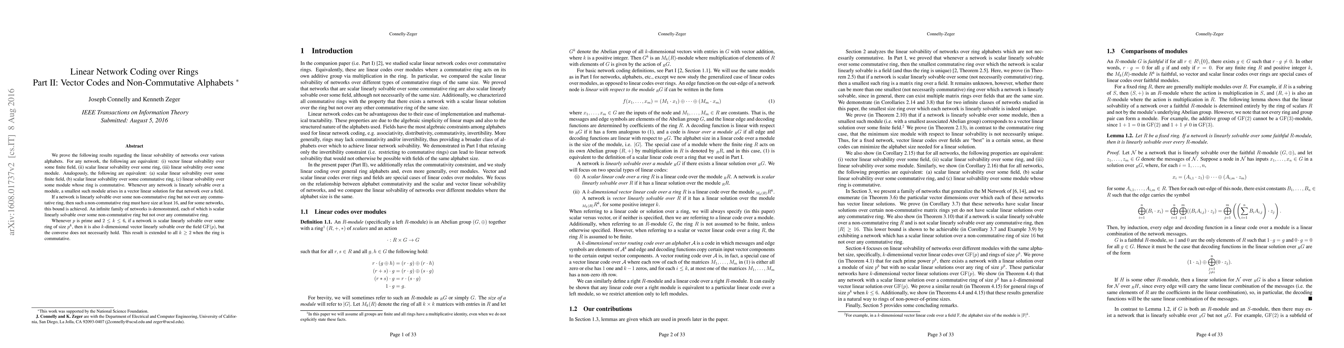 We prove the following results regarding the linear solvability of networks over various alphabets. For any network, the following are equivalent: (i) vector linear solvability over some finite field, (ii) scalar linear solvability over some ring, (iii) linear solvability over some module. Analogously, the following are equivalent: (a) scalar linear solvability over some finite field, (b) scalar linear solvability over some commutative ring, (c) linear solvability over some module whose ring is commutative. Whenever any network is linearly solvable over a module, a smallest such module arises in a vector linear solution for that network over a field. If a network is linearly solvable over some non-commutative ring but not over any commutative ring, then such a non-commutative ring must have size at least $16$, and for some networks, this bound is achieved. An infinite family of networks is demonstrated, each of which is scalar linearly solvable over some non-commutative ring but not over any commutative ring. Whenever $p$ is prime and $2 \le k \le 6$, if a network is scalar linearly solvable over some ring of size $p^k$, then it is also $k$-dimensional vector linearly solvable over the field $GF(p)$, but the converse does not necessarily hold. This result is extended to all $k\ge 2$ when the ring is commutative.