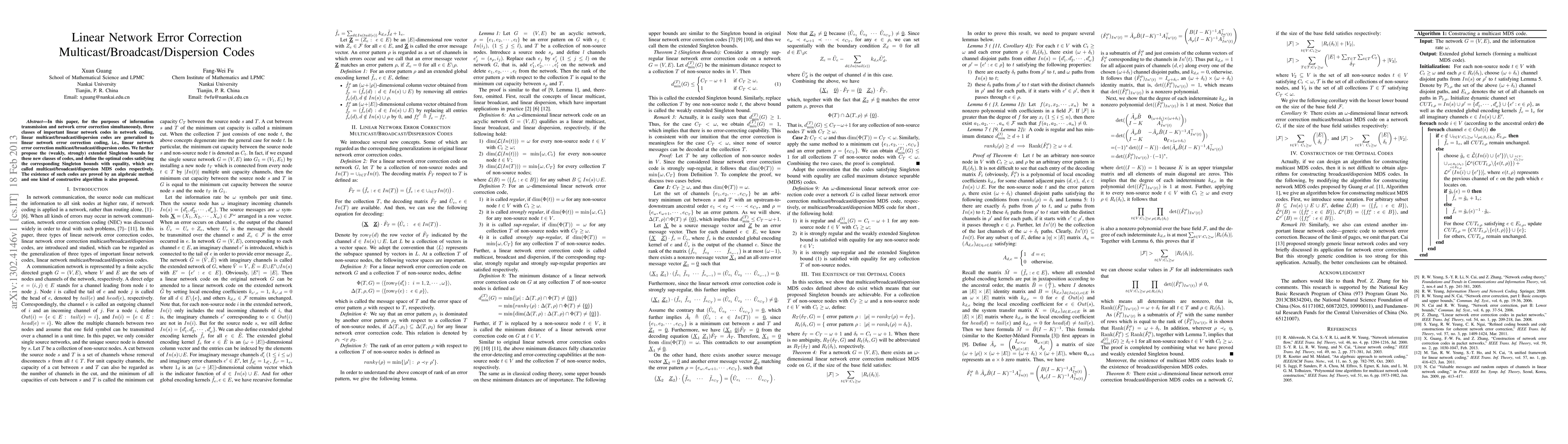 This paper generalizes linear multicast, broadcast, and dispersion codes for simultaneous information transmission and network error correction, introducing linear network error correction versions of these codes. It proposes extended Singleton bounds and introduces multicast/broadcast/dispersion Maximum Distance Separable (MDS) codes, proving their existence through algebraic methods and providing a constructive algorithm.