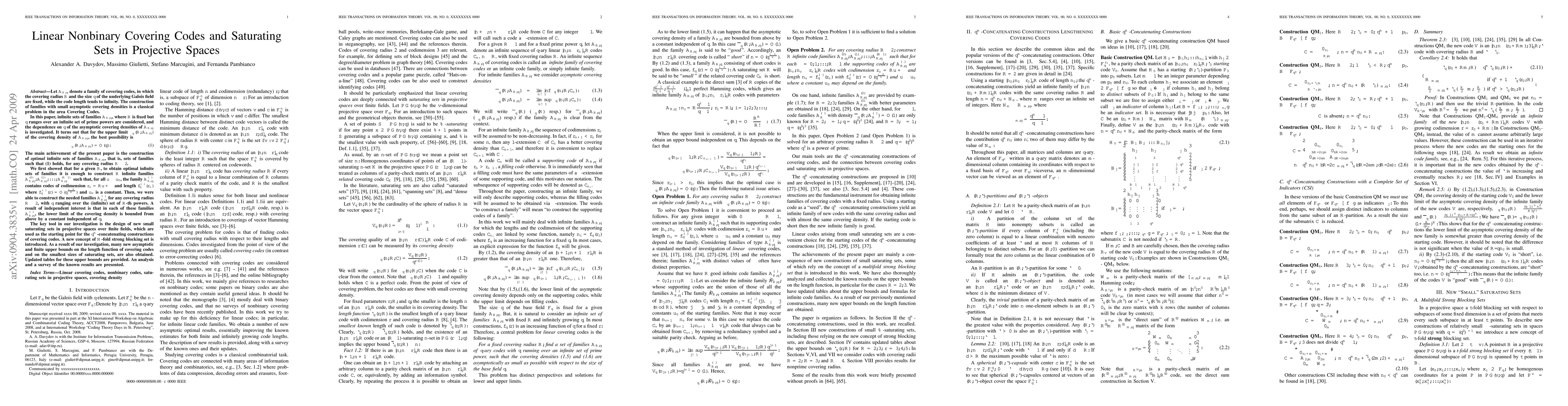 Researchers create infinite sets of linear nonbinary covering codes with optimal asymptotic coverage rates, achieving a limit of O(q) for any given covering radius R >= 2.