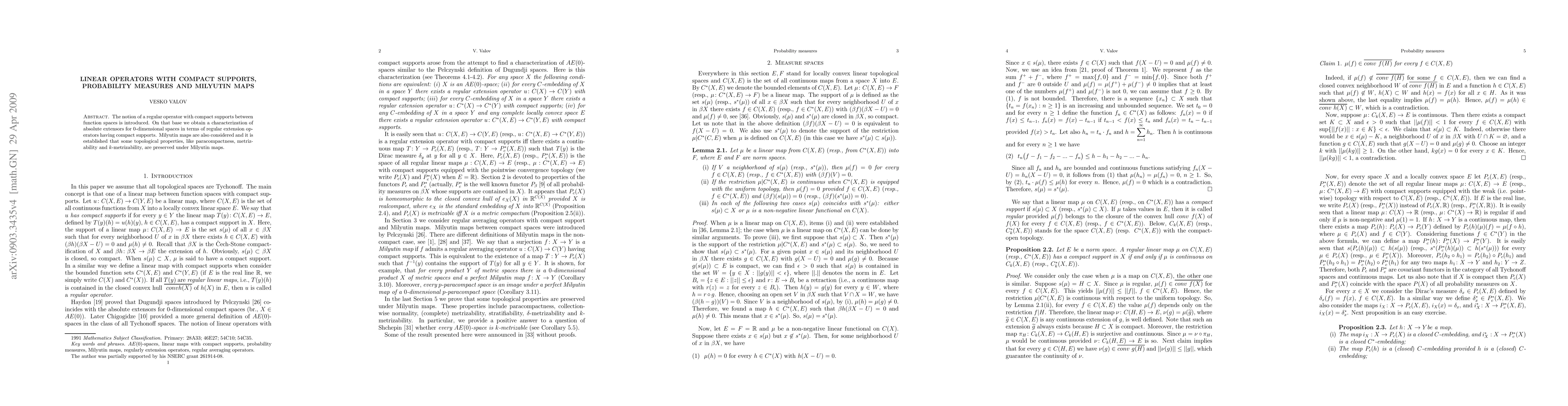 The notion of a regular operator with compact supports between function spaces is introduced. On that base we obtain a characterization of absolute extensors for zero-dimensional spaces in terms of regular extension operators having compact supports. Milyutin maps are also considered and it is established that some topological properties, like paracompactness, metrizability and k-metrizability, are preserved under Milyutin maps.