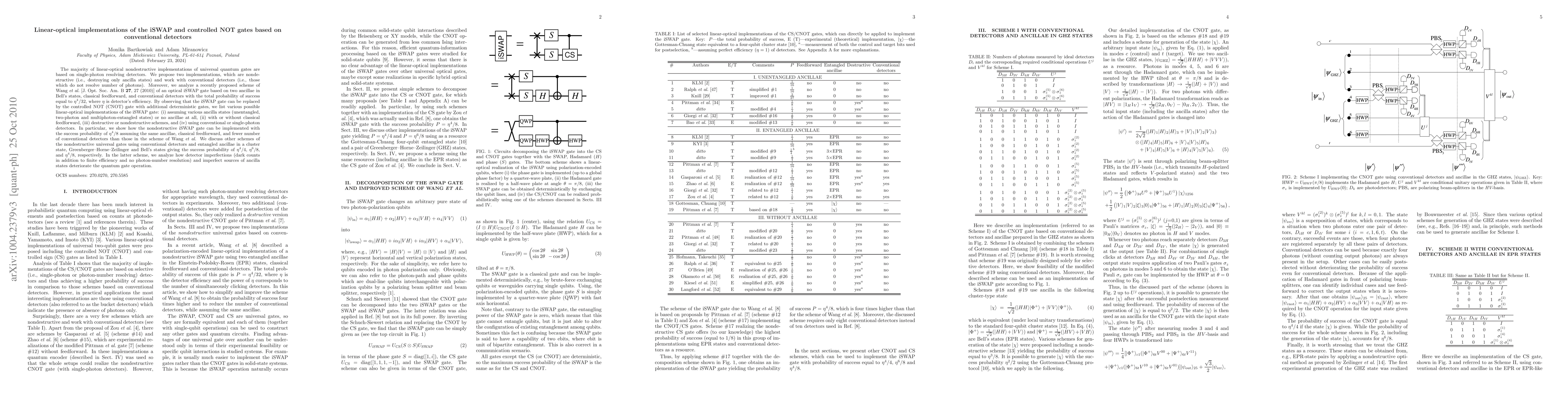 This paper proposes nondestructive linear-optical implementations of the iSWAP and controlled NOT gates using conventional detectors, which do not resolve photon numbers. It compares various schemes, including those with different ancilla states and classical feedforward, and analyzes the impact of detector imperfections on gate operation success probabilities.