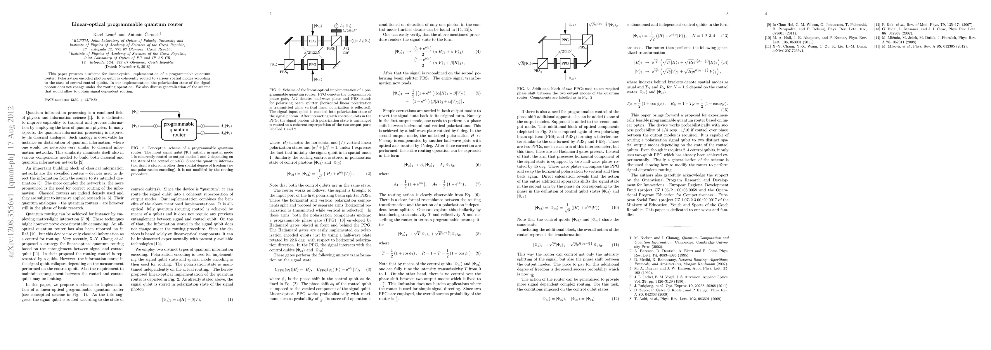 This paper proposes a linear-optical scheme for a programmable quantum router that routes polarization-encoded photon qubits to different spatial modes based on control qubits, without altering the photon's polarization state. The authors also explore extending the scheme for signal-dependent routing.
