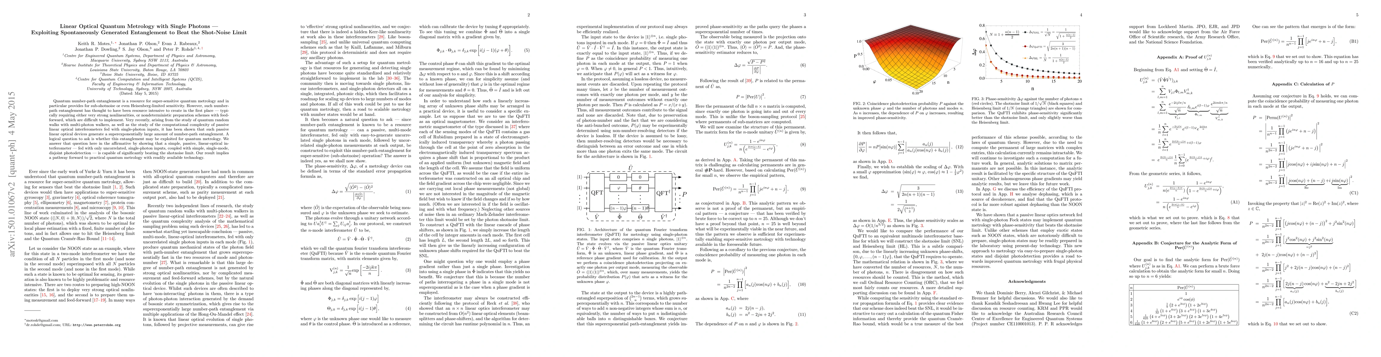 This paper demonstrates that a simple, passive linear-optical interferometer using single photons can generate sufficient number-path entanglement to achieve quantum metrology beyond the shot-noise limit. This approach offers a practical pathway to super-sensitive measurements using readily available technology.