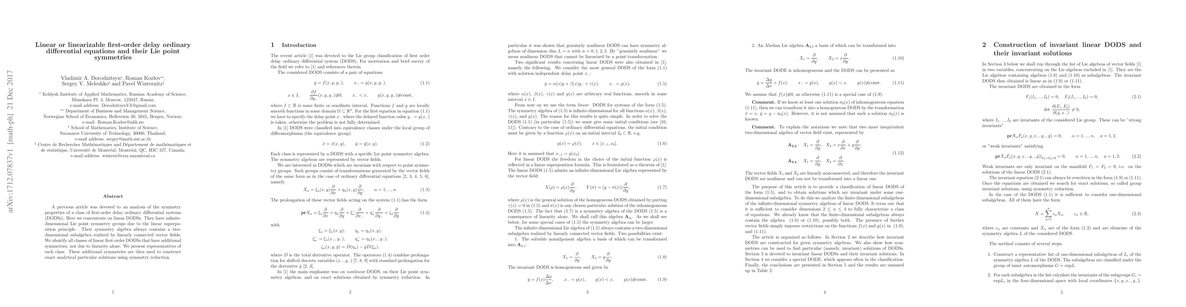 This paper investigates linear first-order delay ordinary differential equations (DODSs) and their Lie point symmetries, identifying classes with additional symmetries beyond linearity. It utilizes these symmetries to construct exact analytical solutions via symmetry reduction.