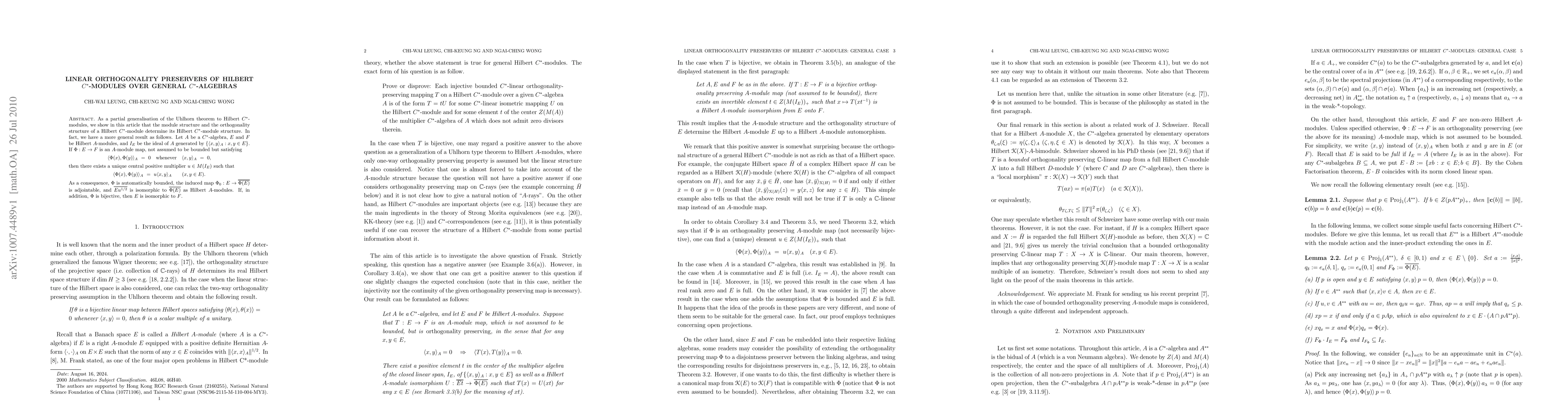 A Hilbert $C^*$-module is uniquely determined by its module structure and orthogonality structure, allowing for the preservation of these structures under linear transformations.