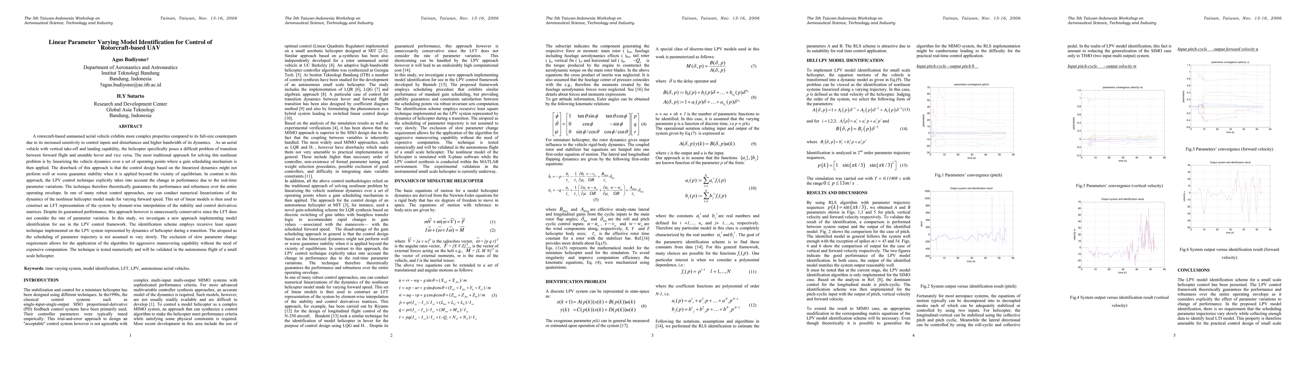 A rotorcraft-based unmanned aerial vehicle exhibits more complex properties compared to its full-size counterparts due to its increased sensitivity to control inputs and disturbances and higher bandwidth of its dynamics. As an aerial vehicle with vertical take-off and landing capability, the helicopter specifically poses a difficult problem of transition between forward flight and unstable hover and vice versa. The LPV control technique explicitly takes into account the change in performance due to the real-time parameter variations. The technique therefore theoretically guarantees the performance and robustness over the entire operating envelope. In this study, we investigate a new approach implementing model identification for use in the LPV control framework. The identification scheme employs recursive least square technique implemented on the LPV system represented by dynamics of helicopter during a transition. The airspeed as the scheduling of parameter trajectory is not assumed to vary slowly. The exclusion of slow parameter change requirement allows for the application of the algorithm for aggressive maneuvering capability without the need of expensive computation. The technique is tested numerically and will be validated in the autonomous flight of a small scale helicopter.