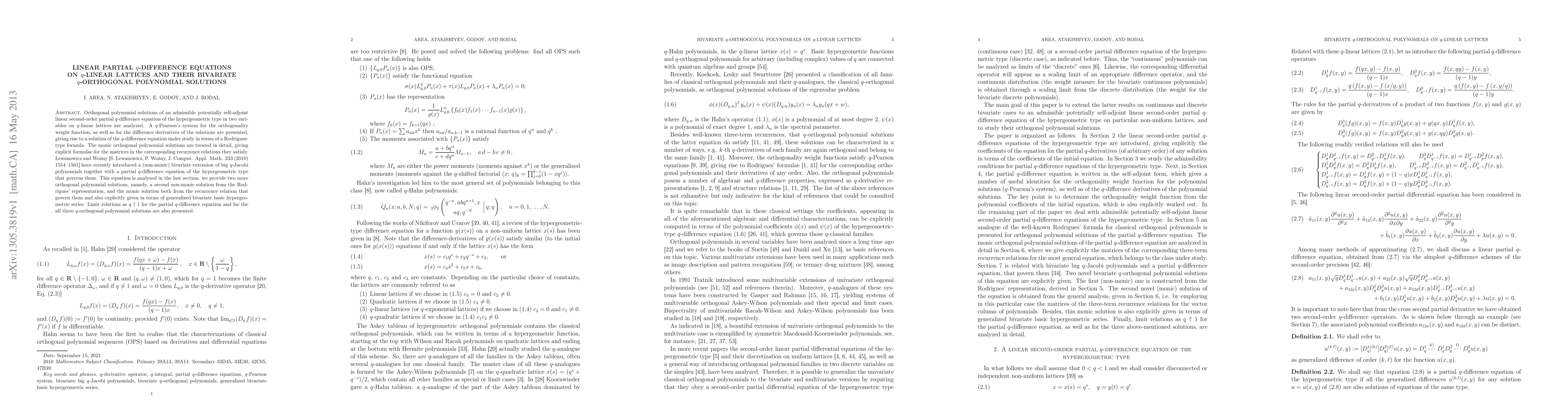 This paper analyzes orthogonal polynomial solutions for a linear second-order partial $q$-difference equation in two variables on $q$-linear lattices, providing $q$-Pearson's systems and Rodrigues-type formulas. It also introduces additional orthogonal polynomial solutions and discusses limit behaviors as $q$ approaches 1.