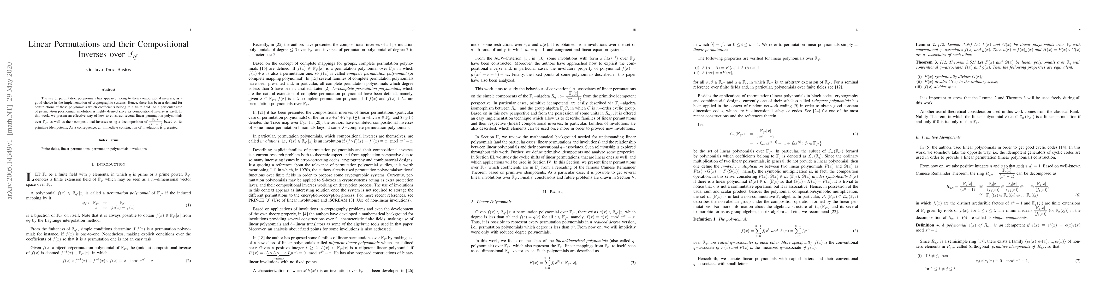 The use of permutation polynomials has appeared, along to their compositional inverses, as a good choice in the implementation of cryptographic systems. Hence, there has been a demand for constructions of these polynomials which coefficients belong to a finite field. As a particular case of permutation polynomial, involution is highly desired since its compositional inverse is itself. In this work, we present an effective way of how to construct several linear permutation polynomials over $\mathbb{F}_{q^n}$ as well as their compositional inverses using a decomposition of $\displaystyle{\frac{\mathbb{F}_q[x]}{\left\langle x^n -1 \right\rangle}}$ based on its primitive idempotents. As a consequence, an immediate construction of involutions is presented.