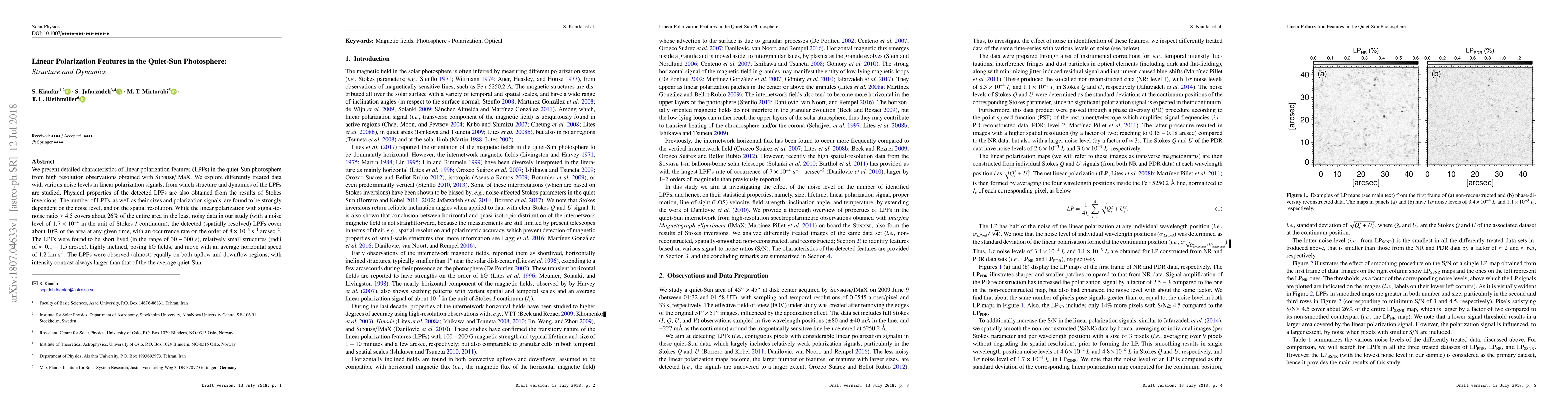 This paper investigates linear polarization features (LPFs) in the quiet-Sun photosphere using high-resolution observations from Sunrise/IMaX. The study reveals that LPFs are short-lived, small structures with radii of 0.1-1.5 arcsec, and exhibit an occurrence rate of $8\times10^{-3}$ s$^{-1}$ arcsec$^{-2}$.