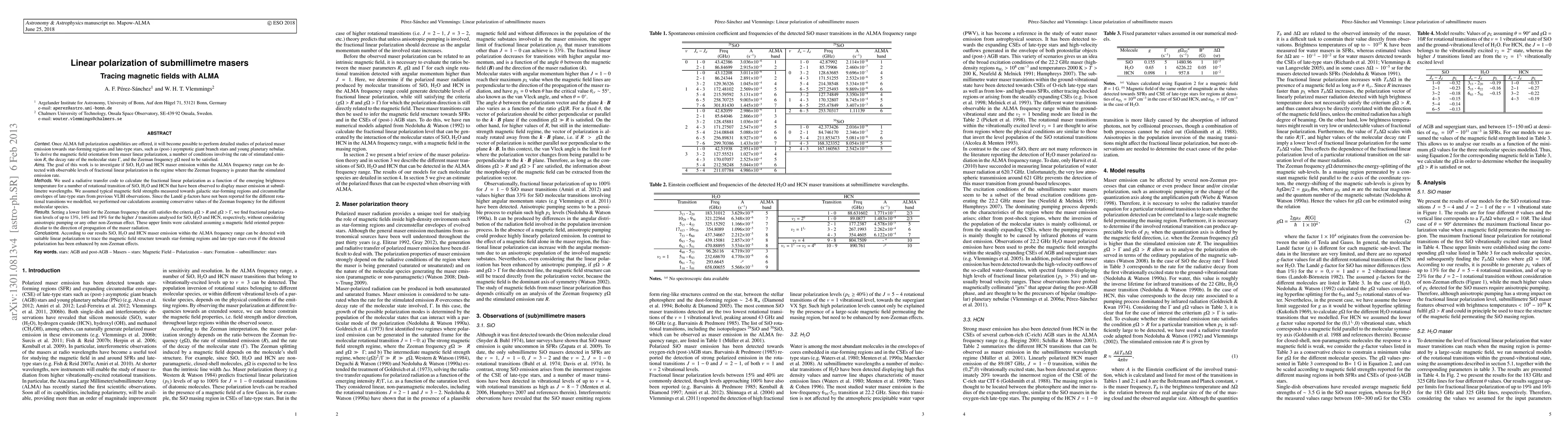 (Abridged) The goal of this work is to investigate if SiO, H2O and HCN maser emission within the ALMA frequency range can be detected with observable levels of fractional linear polarization in the regime where the Zeeman frequency (gOmega) is greater than the stimulated emission rate (R) and the decay rate of the molecular state (Gamma). We have used a radiative transfer code to calculate the fractional linear polarization as a function of the emerging brightness temperature for a number of rotational transition of SiO, H2O and HCN which have been observed to display maser emission at submillimetre wavelengths. We assume typical magnetic field strengths measured towards galactic star forming regions and circumstellar envelopes of late-type stars from previous VLBI observations. Since the Land\'e g-factors have not been reported for the different rotational transitions we have modeled, we performed our calculations assuming conservative values of the Zeeman frequency for the different molecular species. Setting a lower limit for the Zeeman frequency which still satisfies the criteria gOmega>R and gOmega>Gamma, we find fractional polarization levels of up to 13%, 14% and 19% for the higher J transitions analysed for SiO, H2O and HCN, respectively, without considering anisotropic pumping or any other non-Zeeman effect. Such upper limits were calculated assuming a magnetic field oriented perpendicular to the direction of propagation of the maser radiation. According to our results SiO, H2O and HCN maser emission within the ALMA frequency range can be detected with suitable linear polarization to trace the magnetic field structure towards star forming regions and late-type stars, even if the detected polarization has been enhanced by non-Zeeman effects.