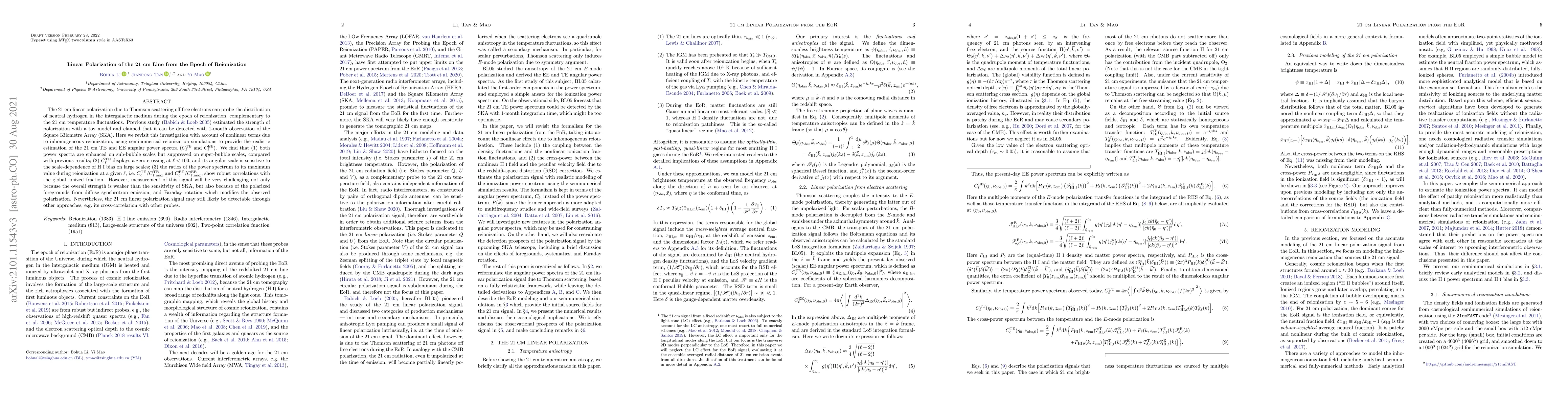 This paper investigates the linear polarization of the 21 cm line during the epoch of reionization, finding enhanced TE and suppressed EE power spectra on sub-bubble scales. Despite challenges due to weaker signals and polarized foregrounds, the polarization may still be detectable through cross-correlation with other probes.