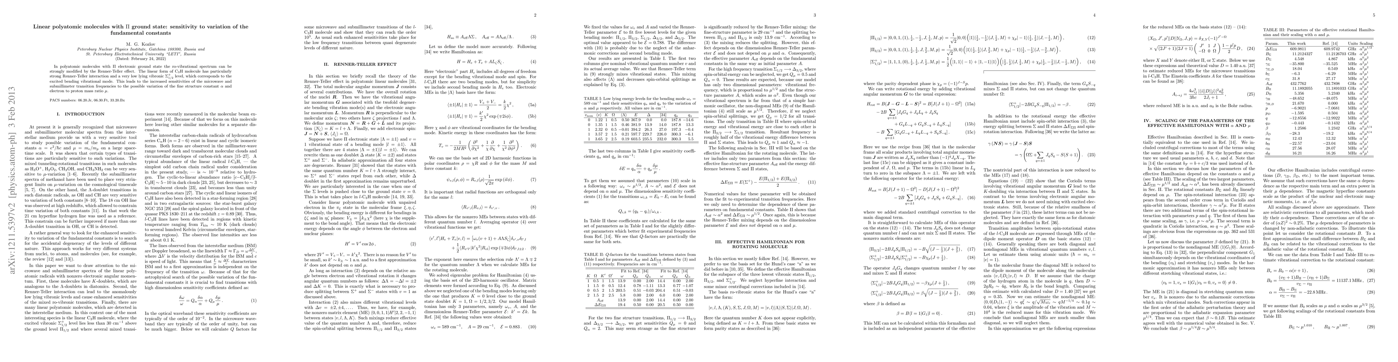 In polyatomic molecules with \Pi\ electronic ground state the ro-vibrational spectrum can be strongly modified by the Renner-Teller effect. The linear form of C3H molecule has particularly strong Renner-Teller interaction and a very low lying vibronic \Sigma+ level, which corresponds to the excited bending vibrational mode. This leads to the increased sensitivities of the microwave and submillimeter transition frequencies to the possible variation of the fine structure constant alpha and electron to proton mass ratio mu.